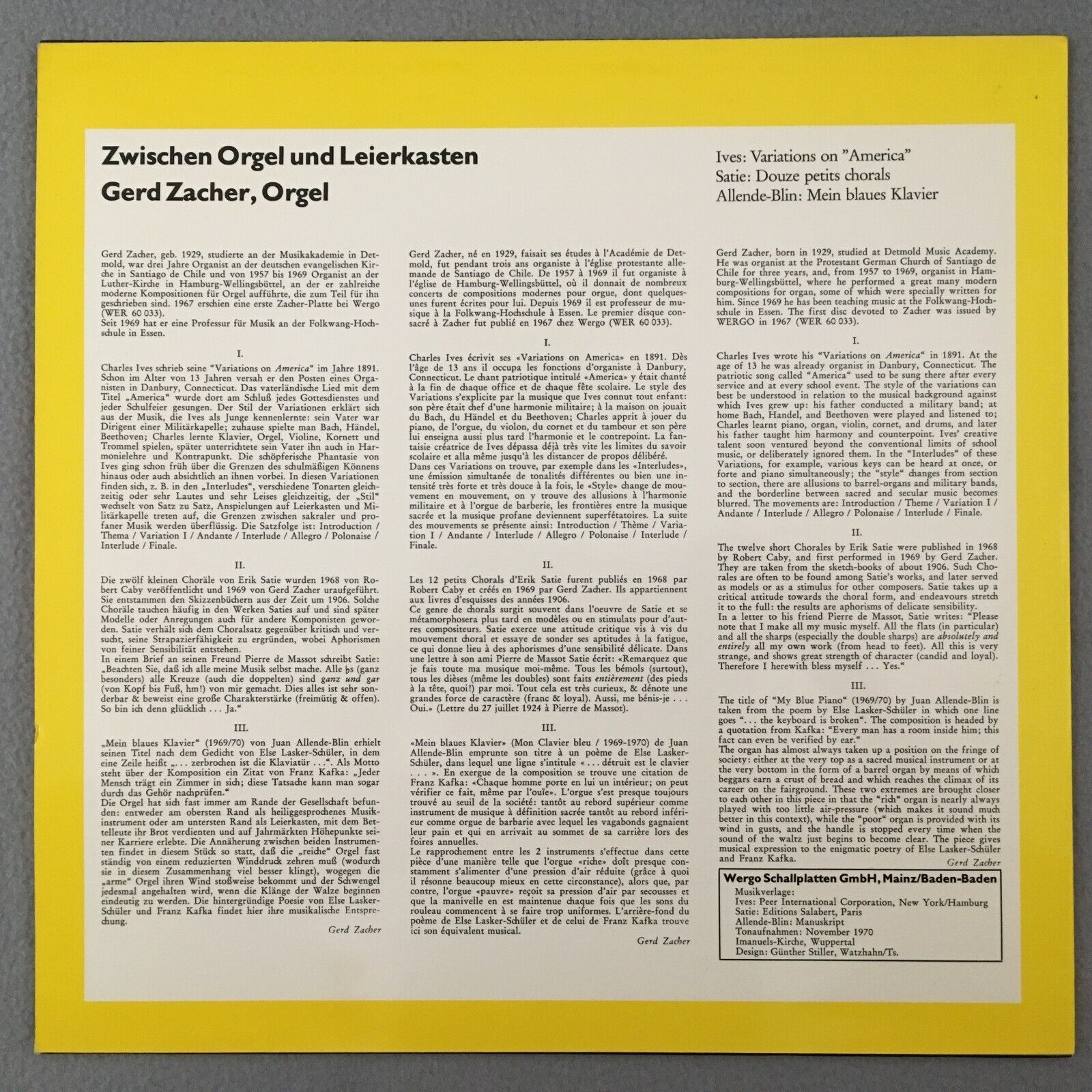 R768 Ives Variations Satie Chorals Zacher Organ Wergo WER 60058 Stereo