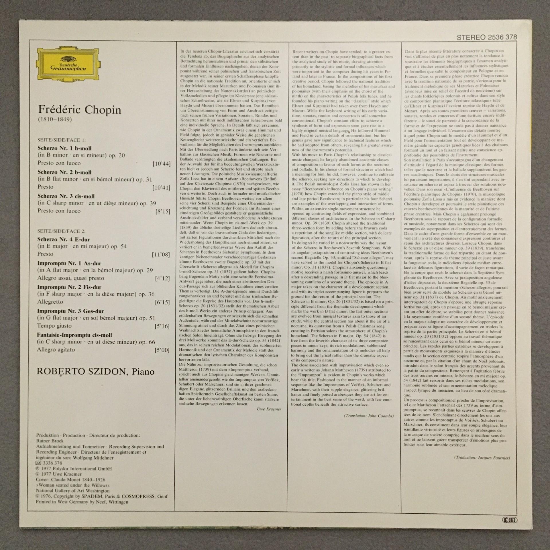 P240 Chopin 4 Scherzi 4 Impromptus Roberto Szidon DGG 2536 378 Stereo