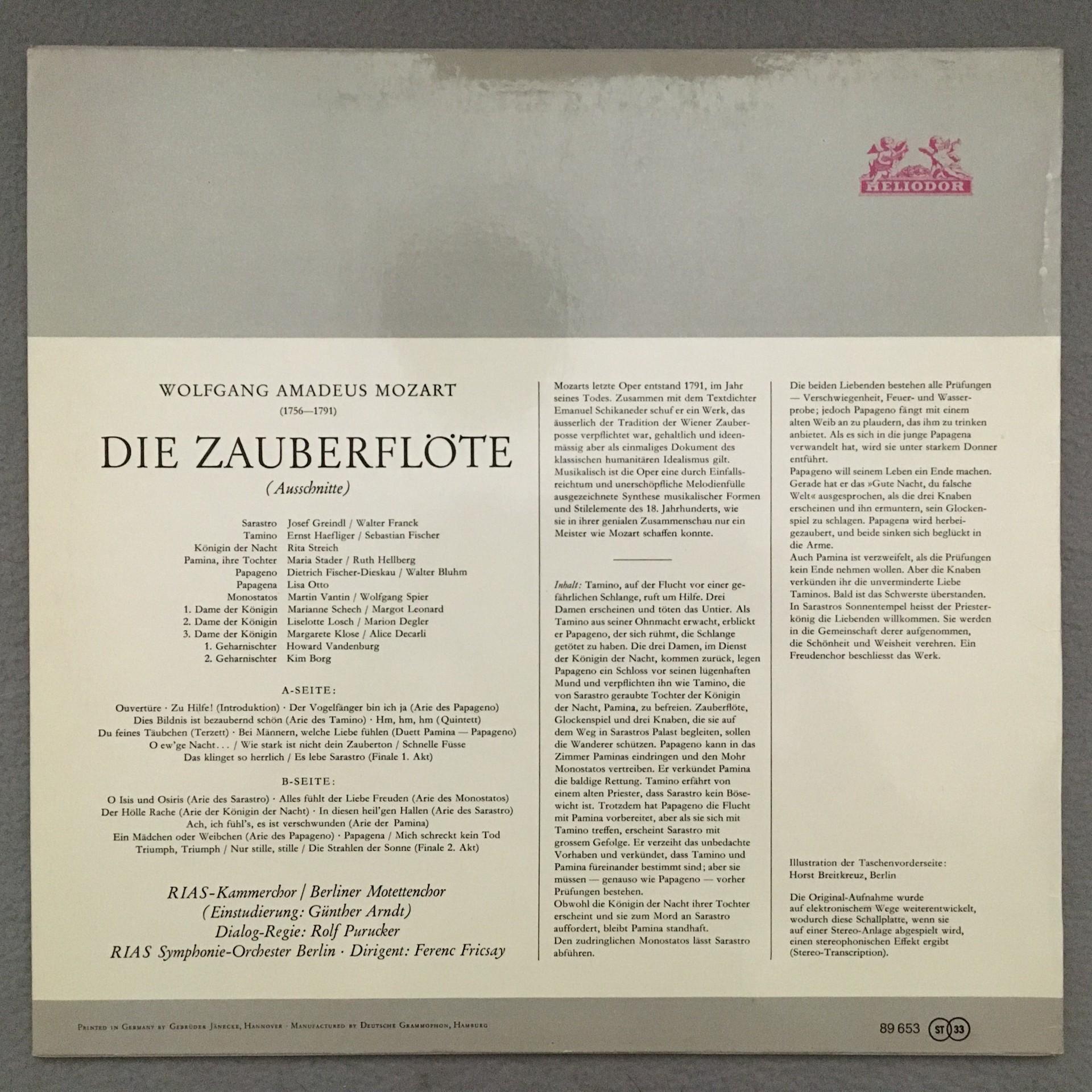 P241 Mozart Magic Flute Stader Fischer-Dieskau Fricsay Heliodor 89 653 Stereo
