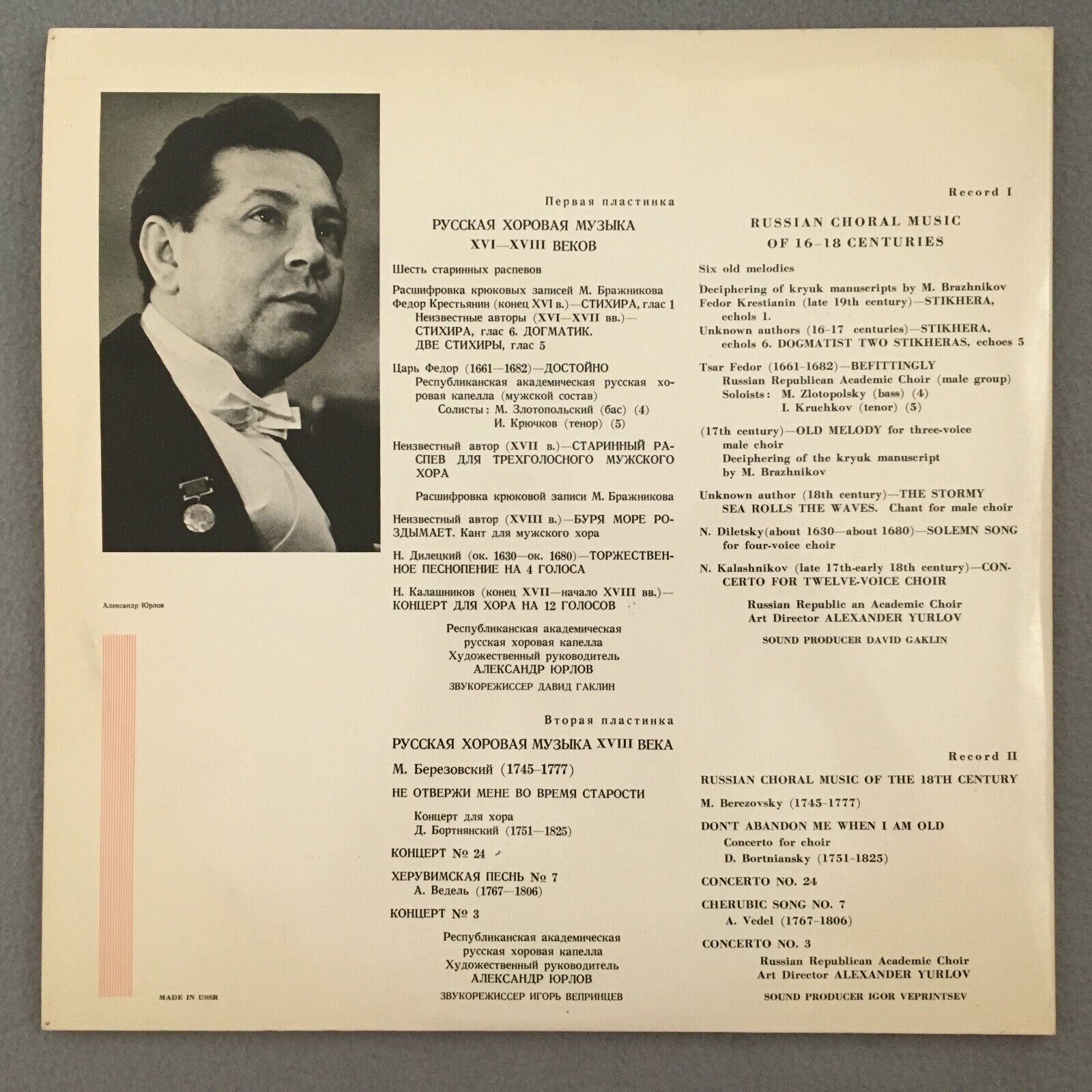 R770 Russian Choral Music 16-18 CenturiesYurlov 2LP Melodiya C 01645-8 Stereo