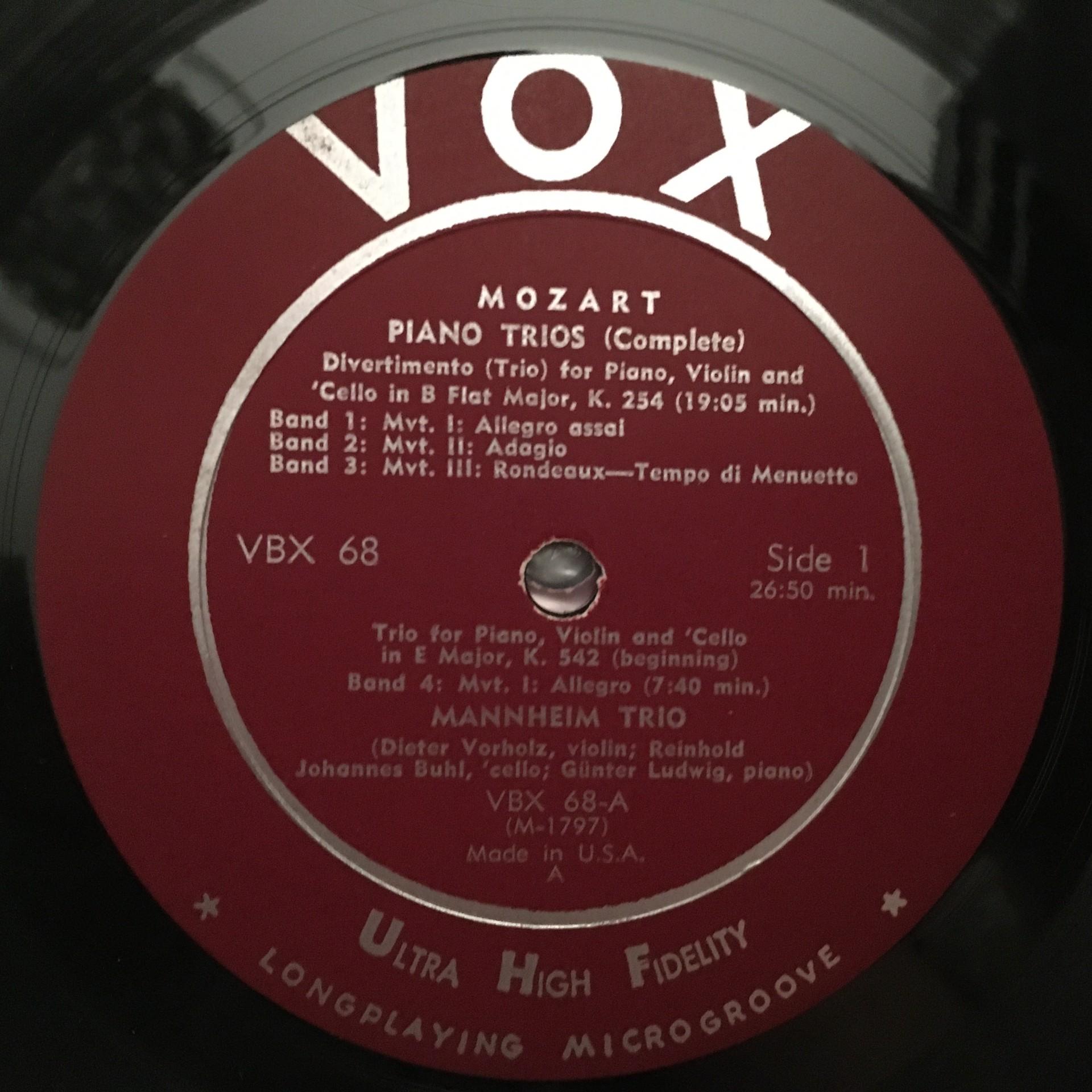 C860 Mozart 7 Trios Mannheim Trio 3LP VOX SVBX 568