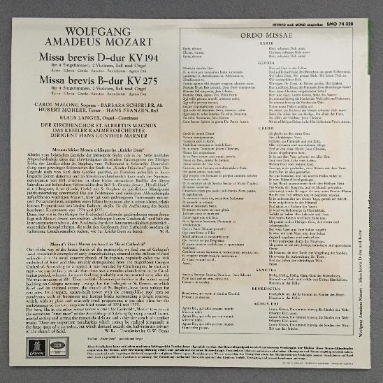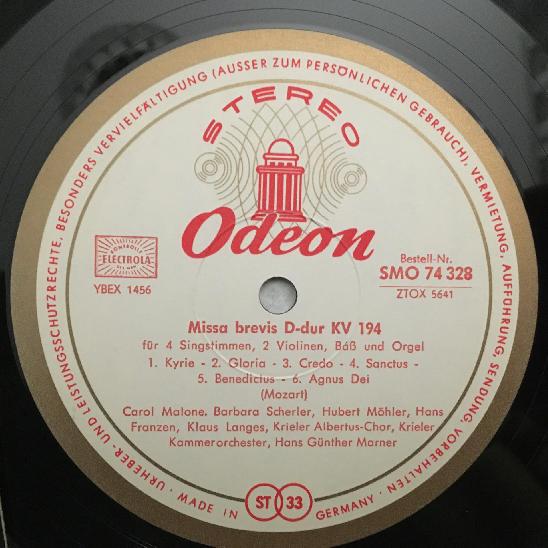 K581 Mozart Missa Brevis Möhler Malone Marner Odeon w/g SMO 74 328 Stereo