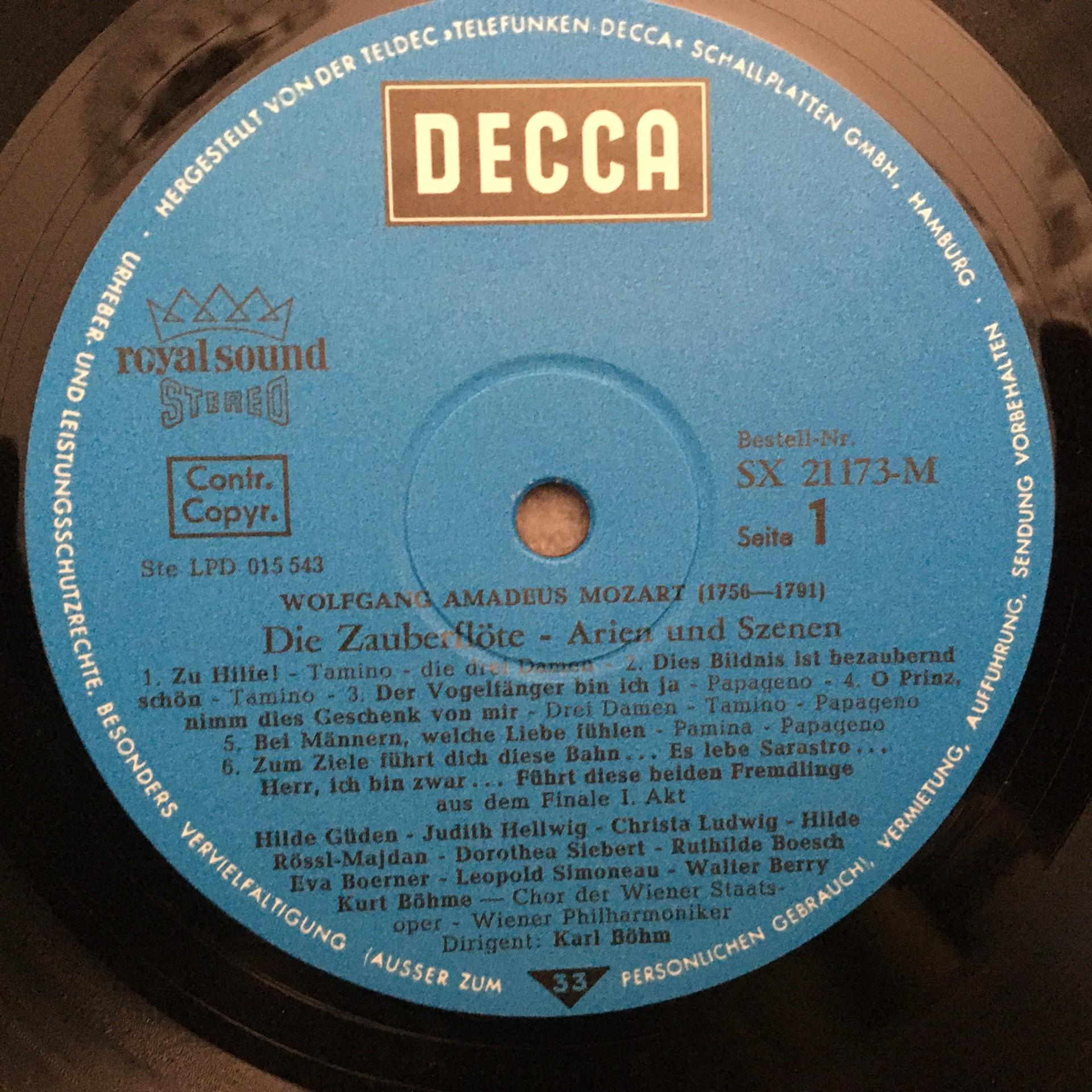 K589 Mozart Magic Flute Güden Ludwig Berry Bohm VPO DECCA SX 21 173-M Stereo