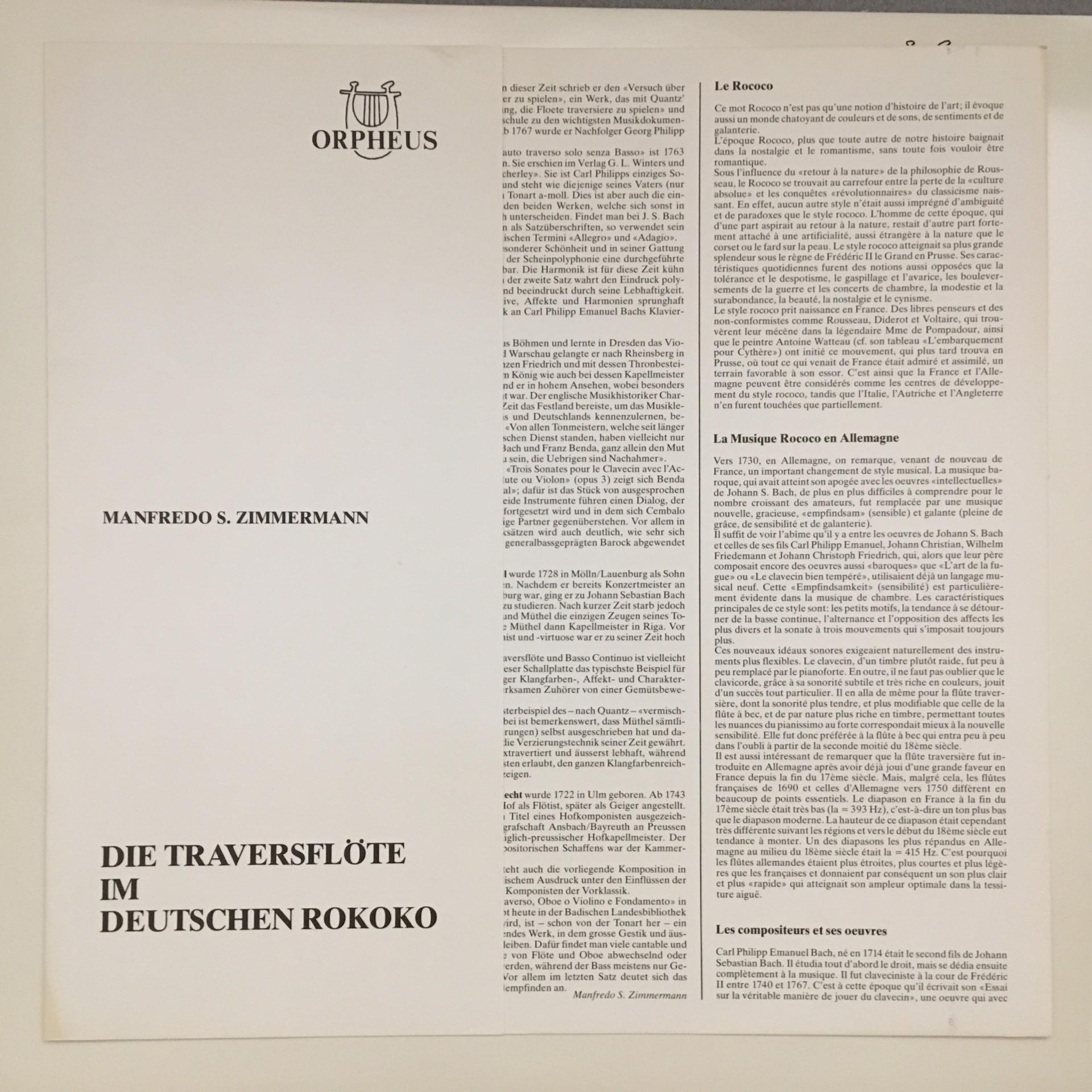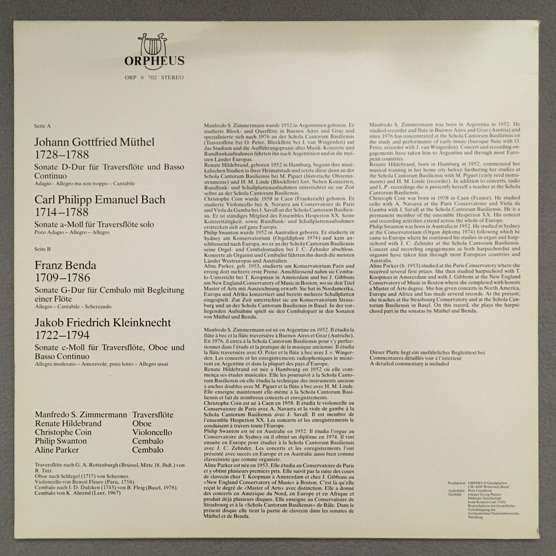 K595 Zimmermann Transverse Flute Müthel C.P.E. Bach Bach Orpheus ORP 0 702 St