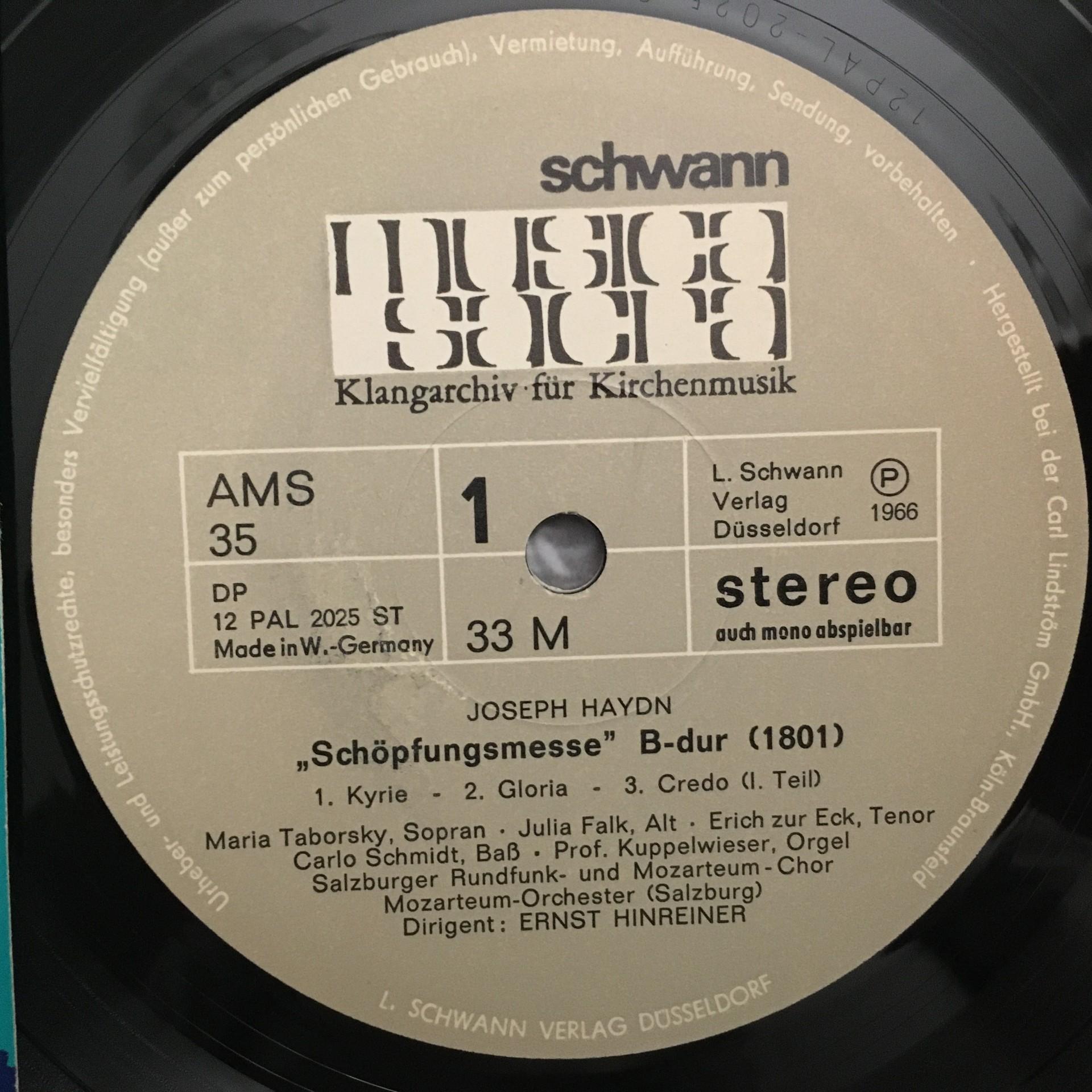 K604 Haydn Coronation Mass Taborsky Falk Hinreiner Musica Sacra AMS 35 Stereo