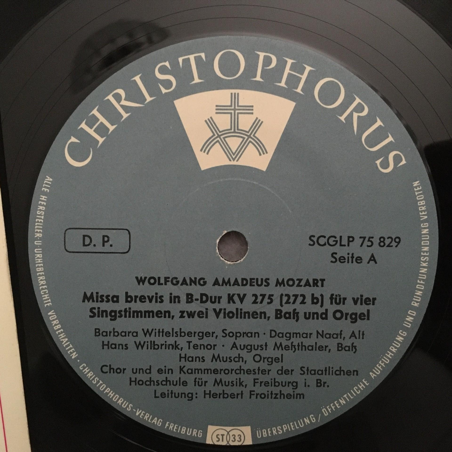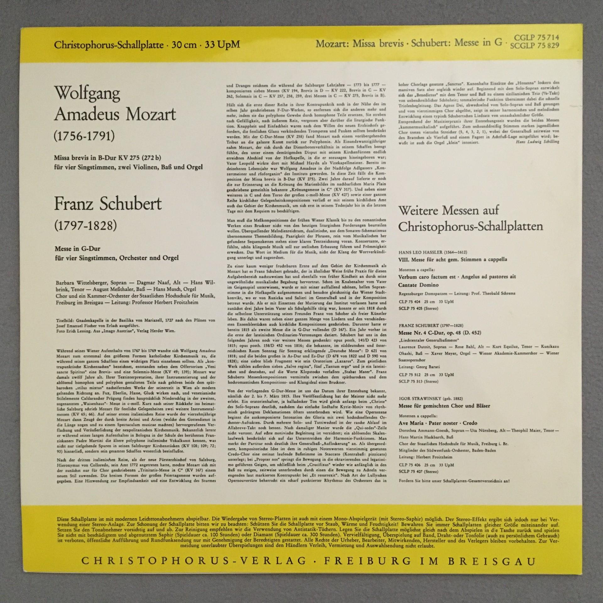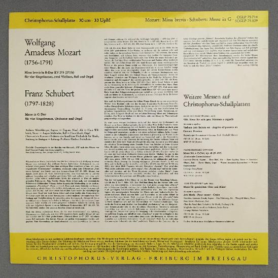 K617 Mozart Missa Brevis Schubert Mass Froitzheim Christophorus SCGLP 75 829 St