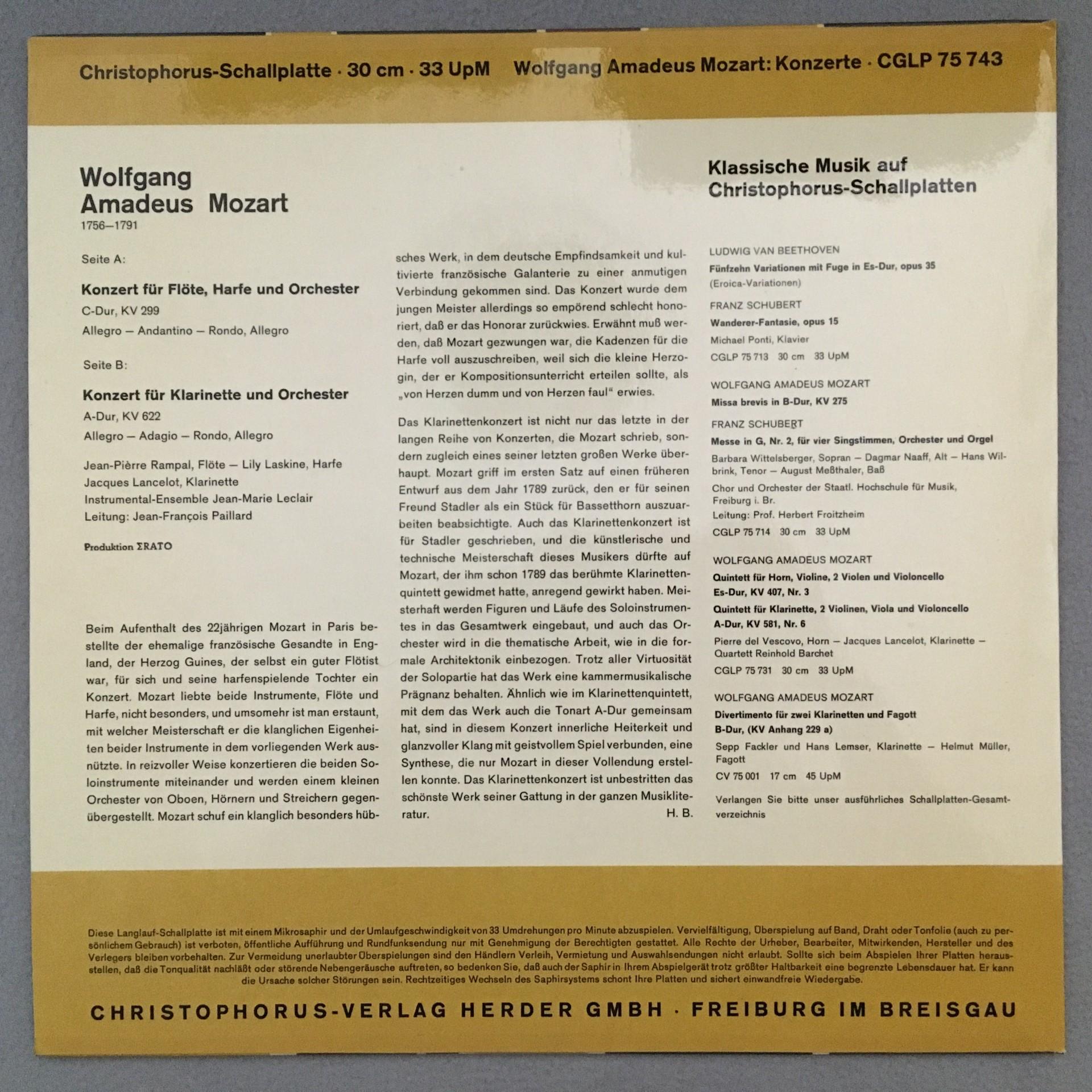 K619 Mozart Flute & Harp Concerto Rampal Paillard Christophorus CGLP 75 743