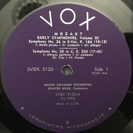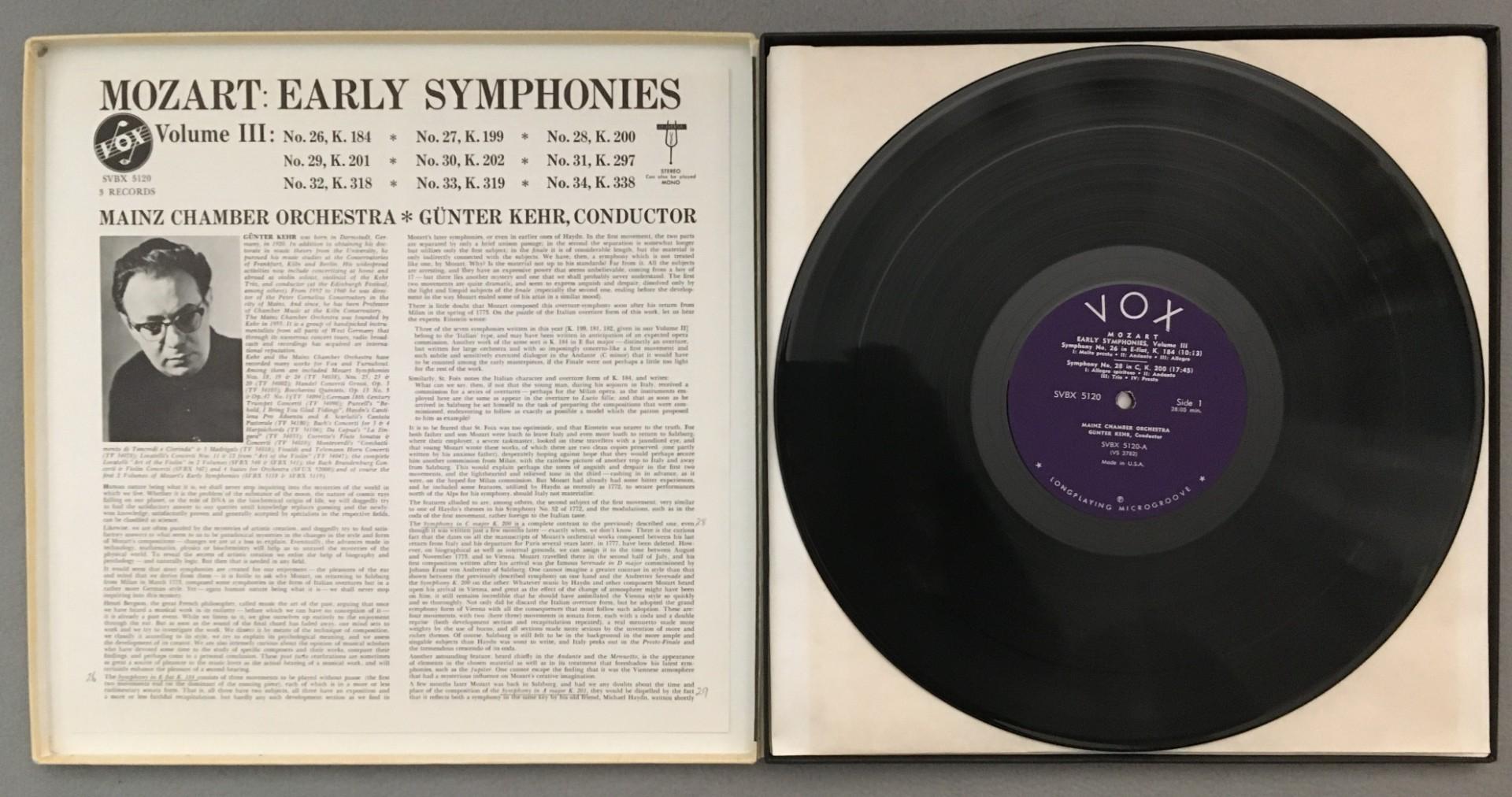 C839 Mozart Early Symphonies Vol.III Kehr 3LP VOX SVBX 5120 Stereo