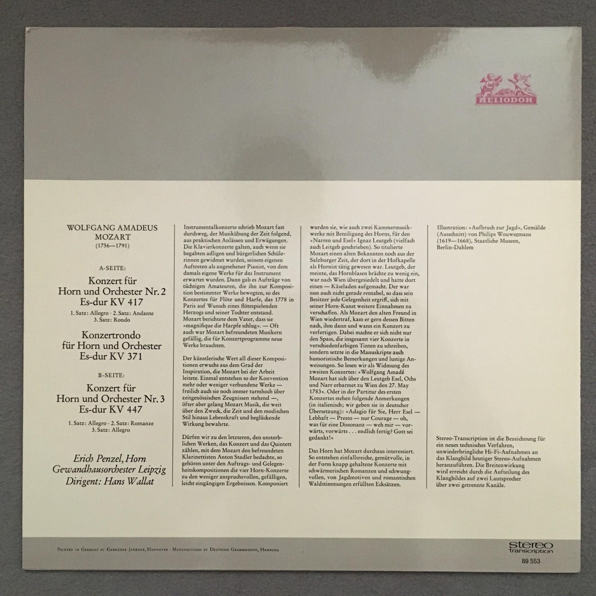 K637 Mozart Horn Concertos Penzel Wallat Heliodor 89 553 Stereo