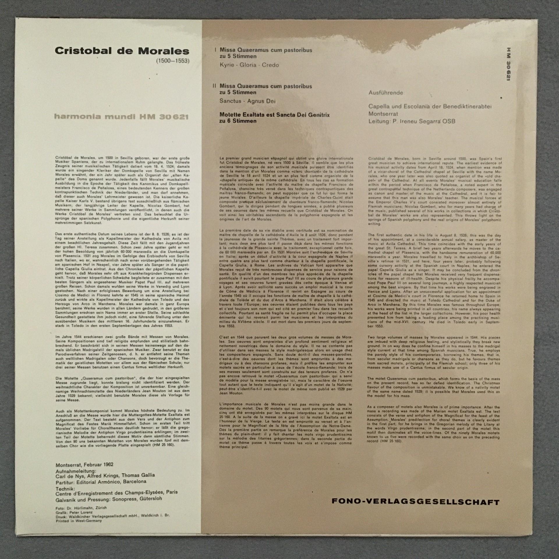 K647 de Morales Mass Motets Segarra Harmonia Mundi HM 30 621