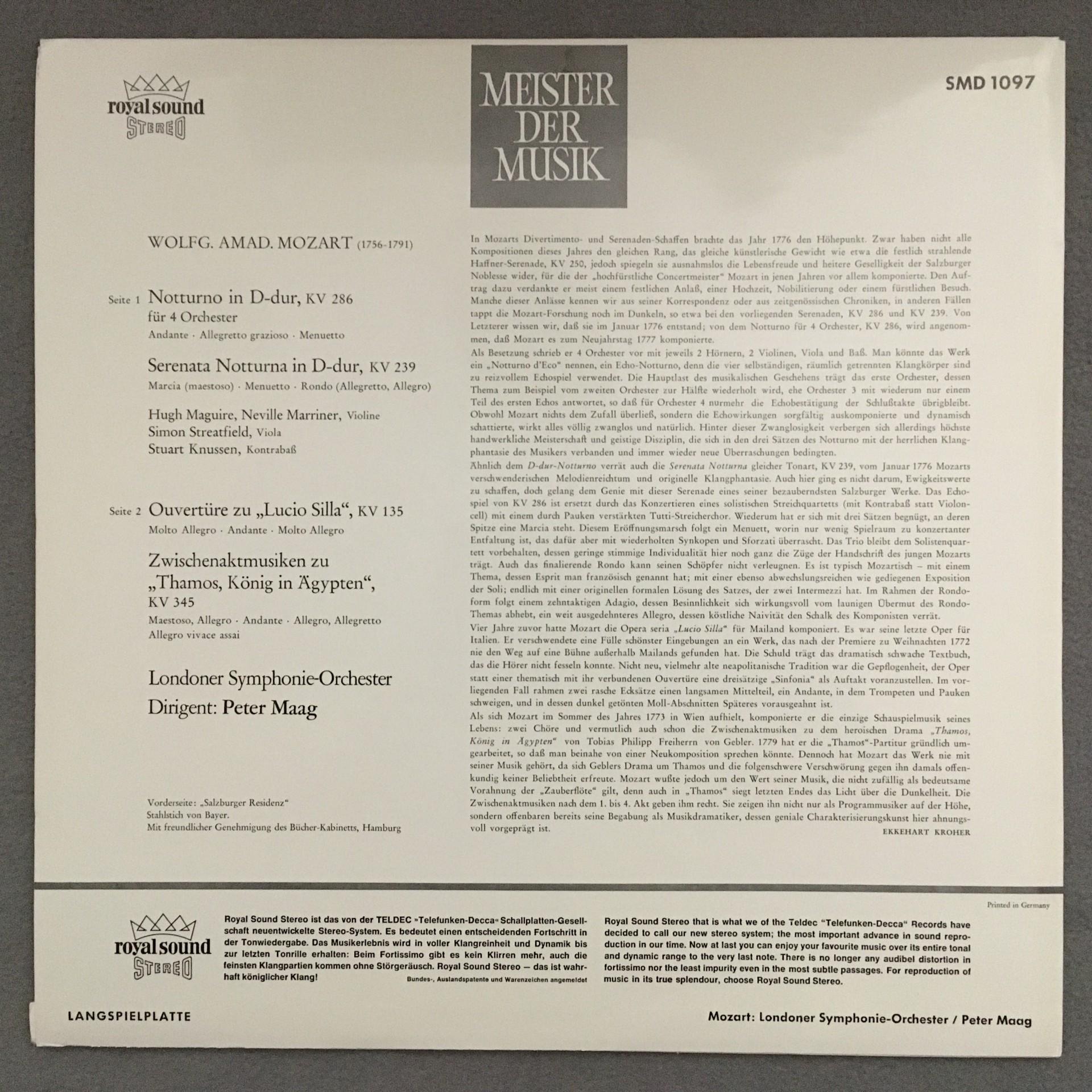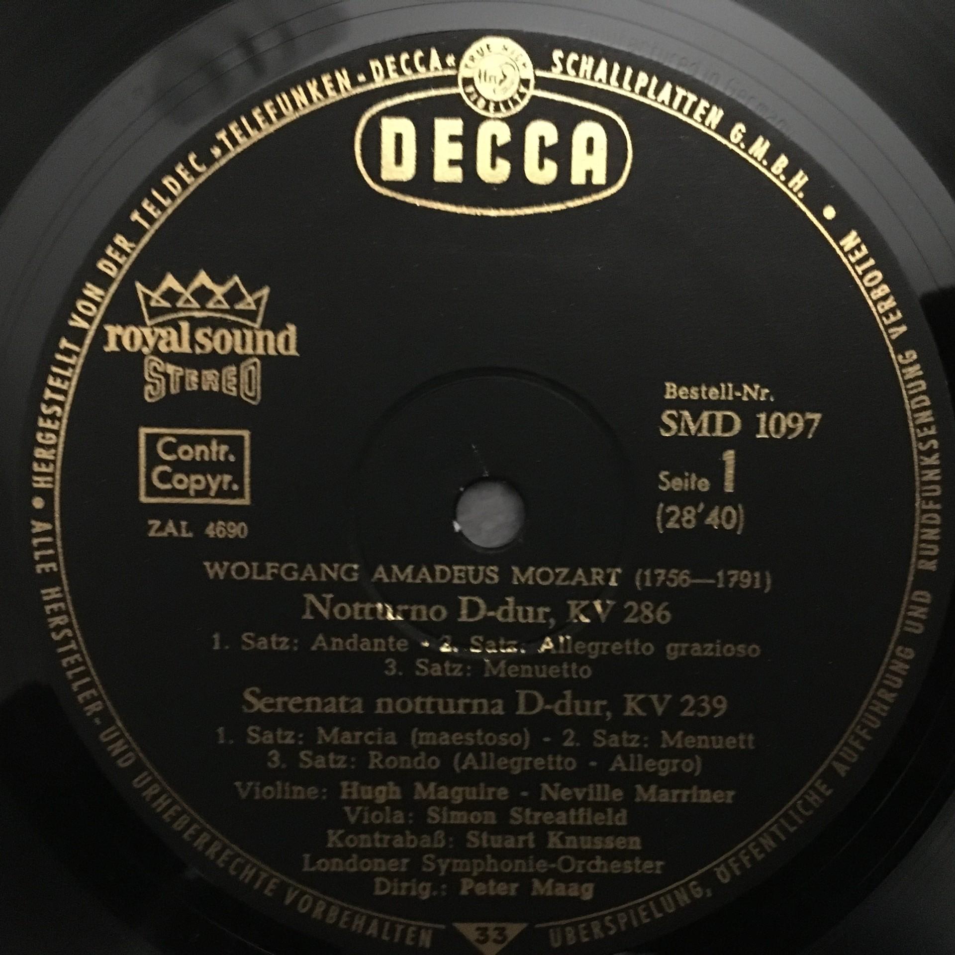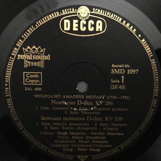 K654 Mozart Notturno Serenade Overture Maag DECCA SMD 1097 Stereo