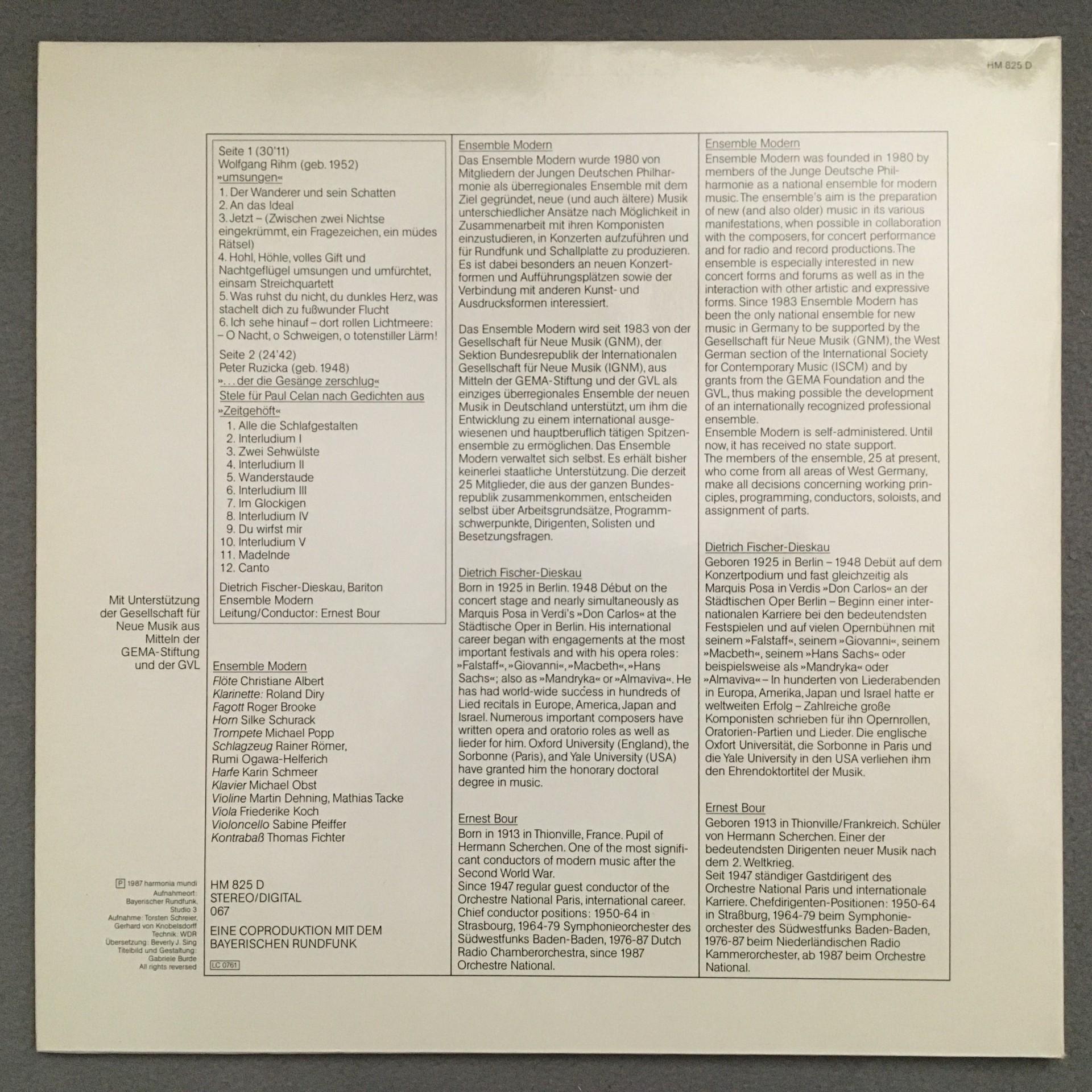K656 Rihm Ruzicka Songs Fischer-Dieskau Ensemble Modern HM 825 D Digital Ster