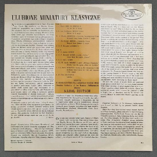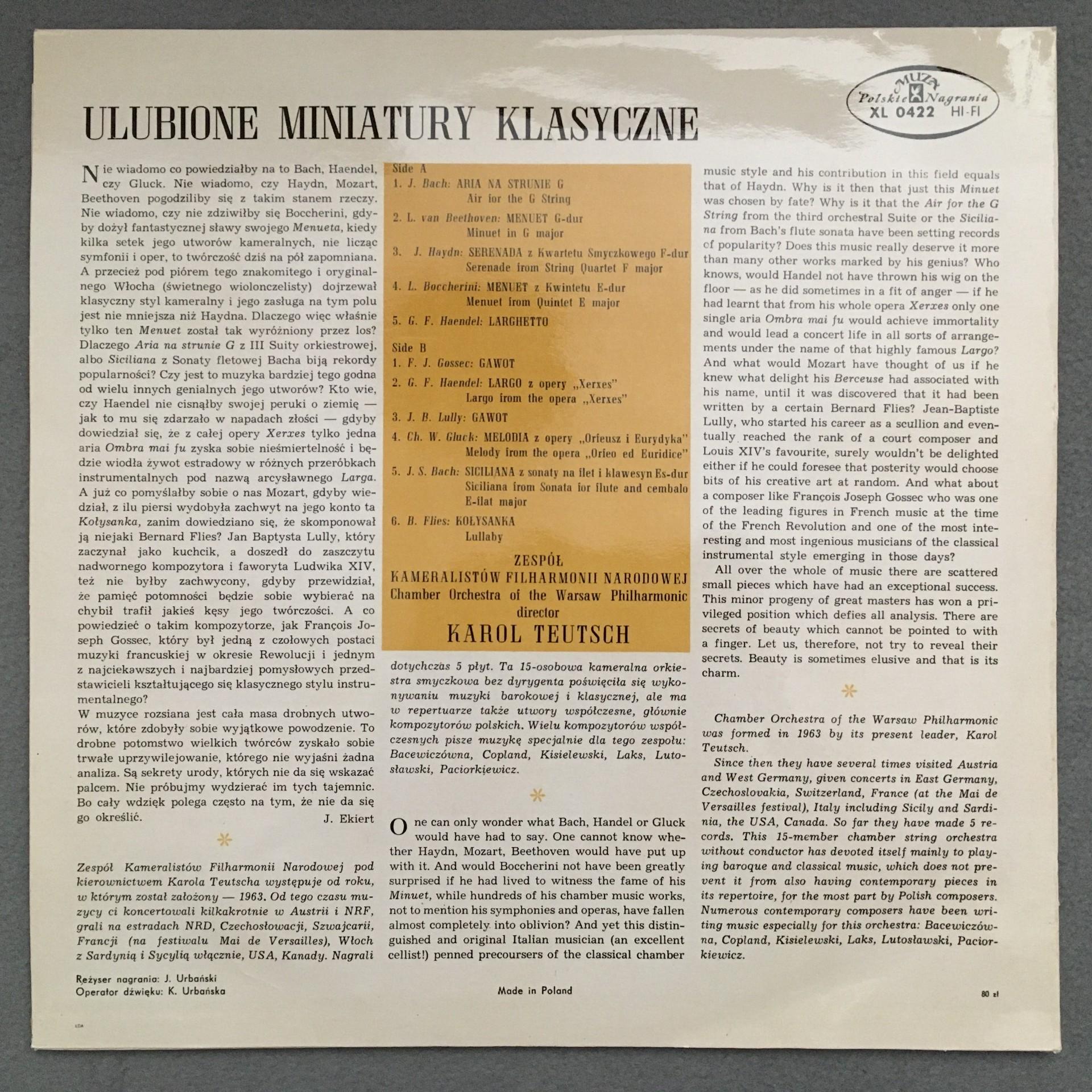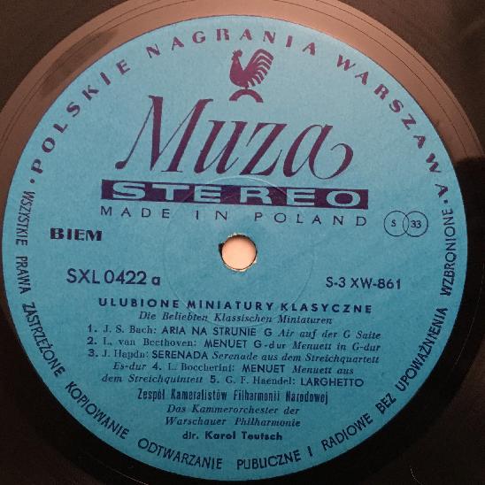 K657 Classical Miniatures Bach Beethoven Handel Teutsch Muza XL 0422 Stereo