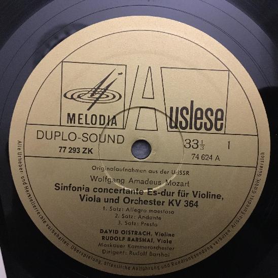 K659 Mozart Symphony Concerto Oistrakh Barshai Melodiya 77 293 ZK Duplo Sound