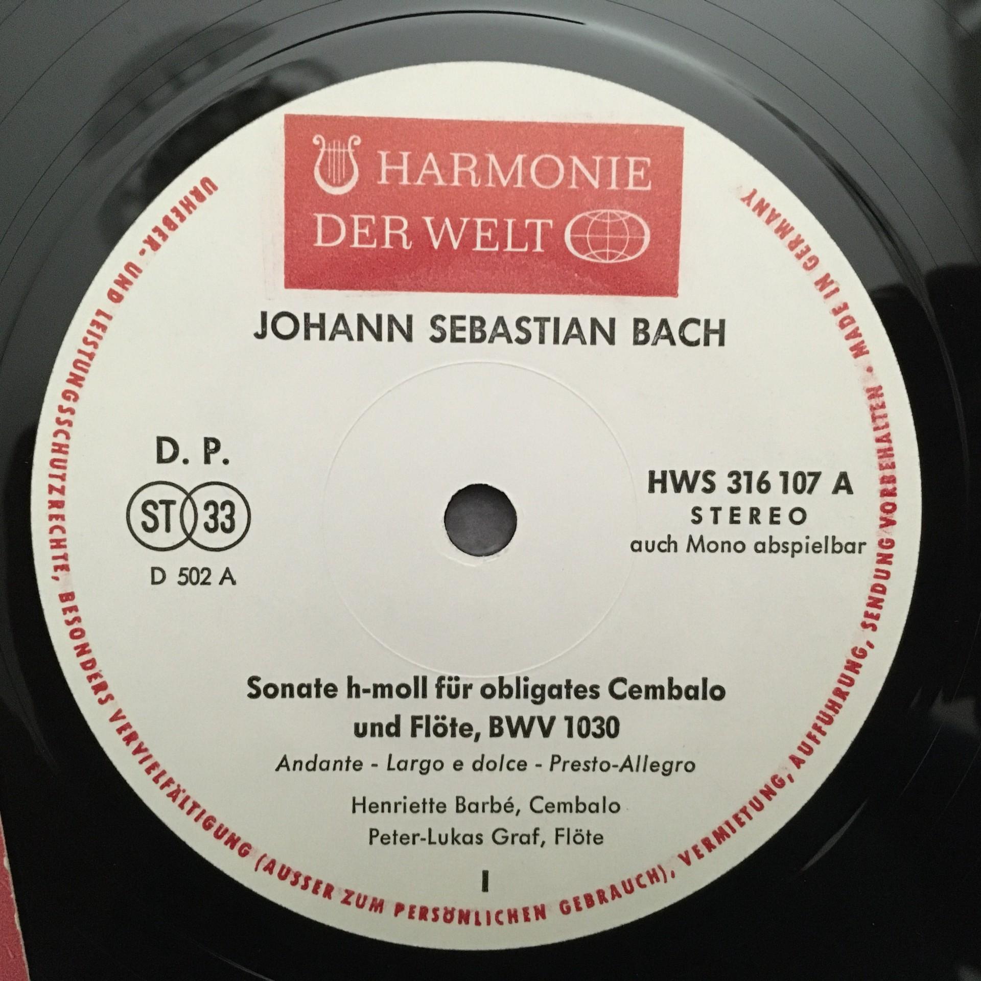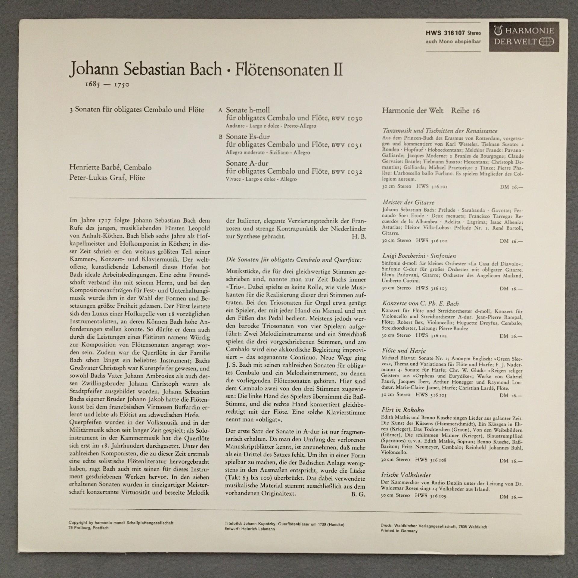 K664 Bach Flute Sonatas Graf Barbe Harpsichord Harmonie der Welt HMW 316 107 St