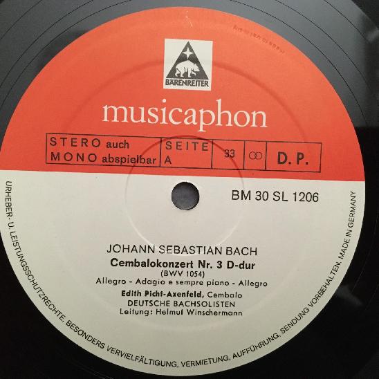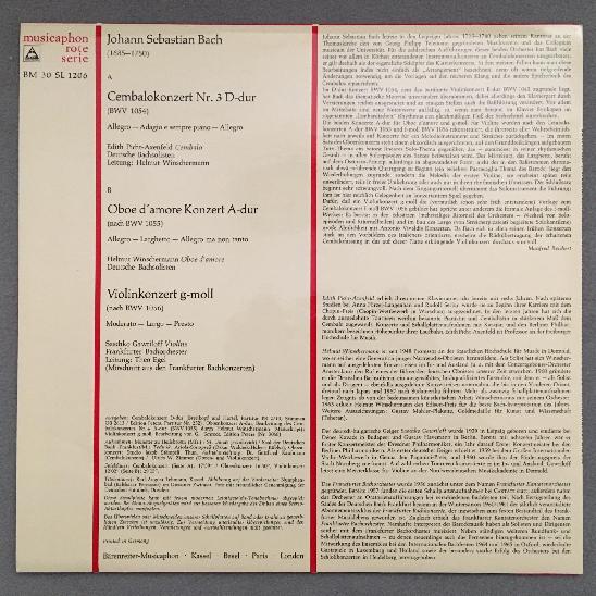 K666 Bach Concertos Gawriloff Winschermann Musicaphon BM 30 SL 1206 Stereo