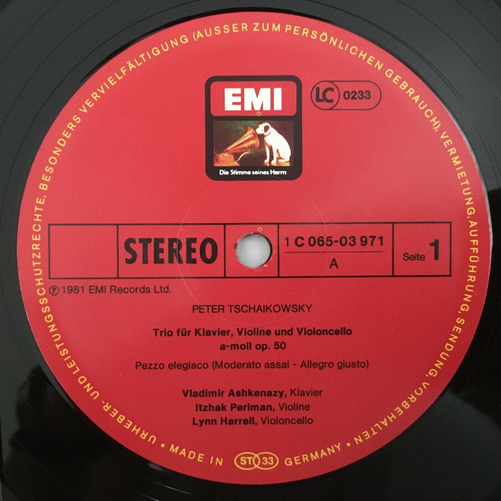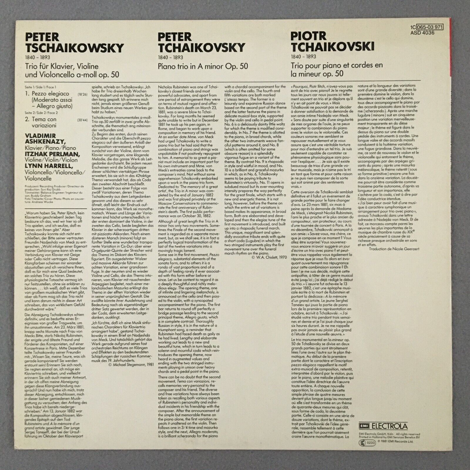 R802 Tchaikovsky Piano Trio Perlman Ashkenazy Harrell EMI 1C 065-03 971 Stereo