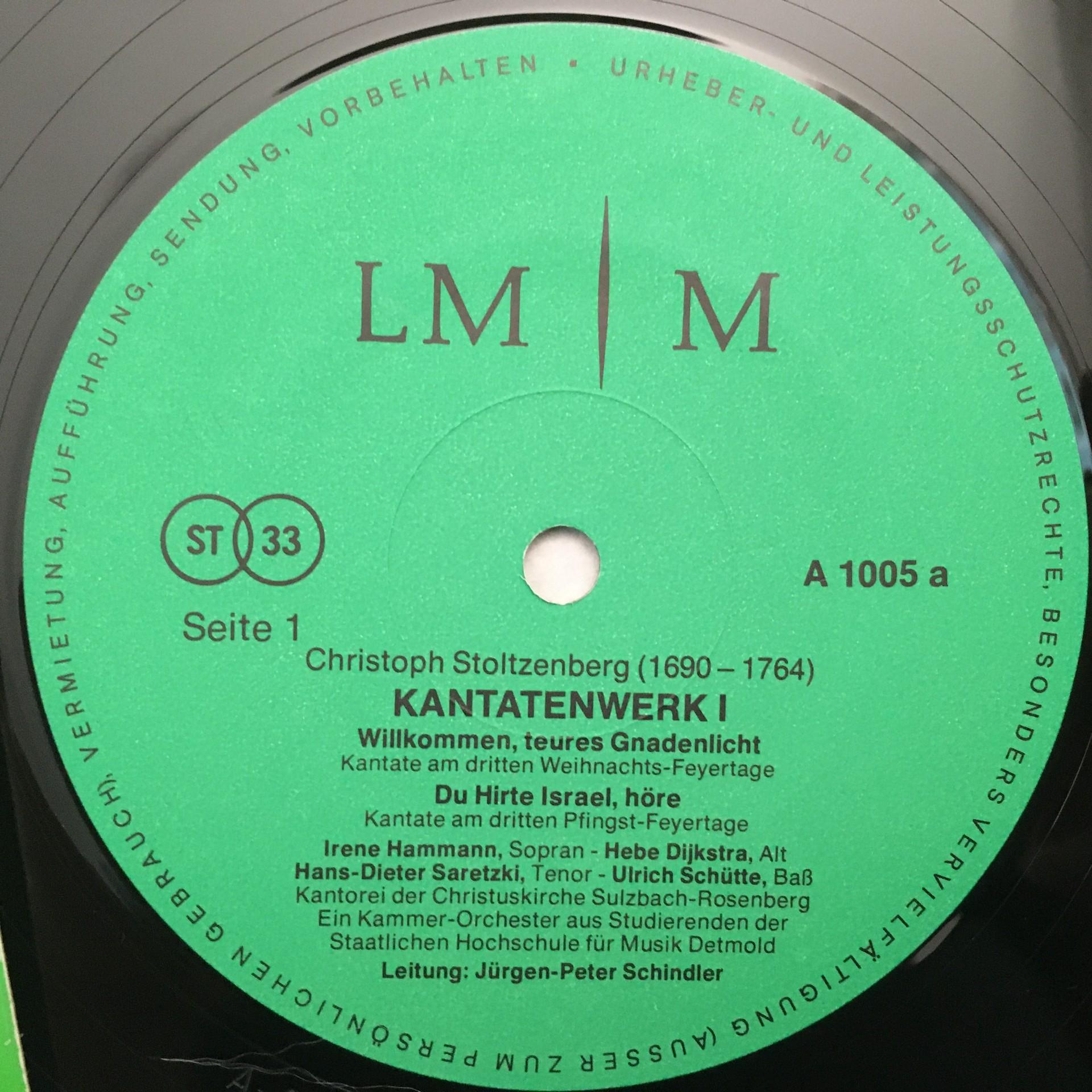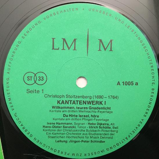 K679 Stoltzenberg Cantatas Work I Hammann Schindler 2LP LM/M A 1005/6 Stereo