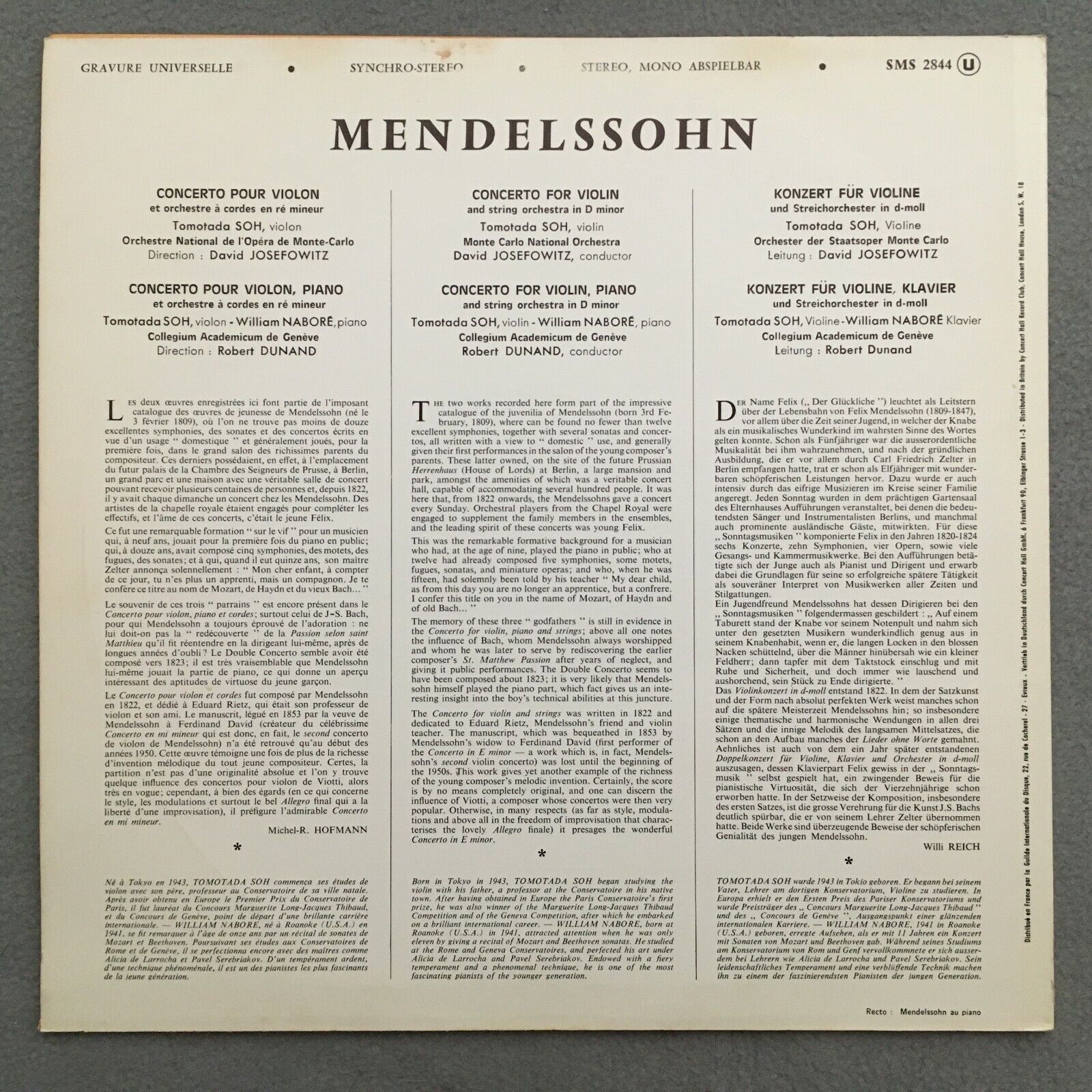R833 Mendelssohn Piano & Violin Concerto Soh Dunand Concert Hall SMS 2844 Stereo