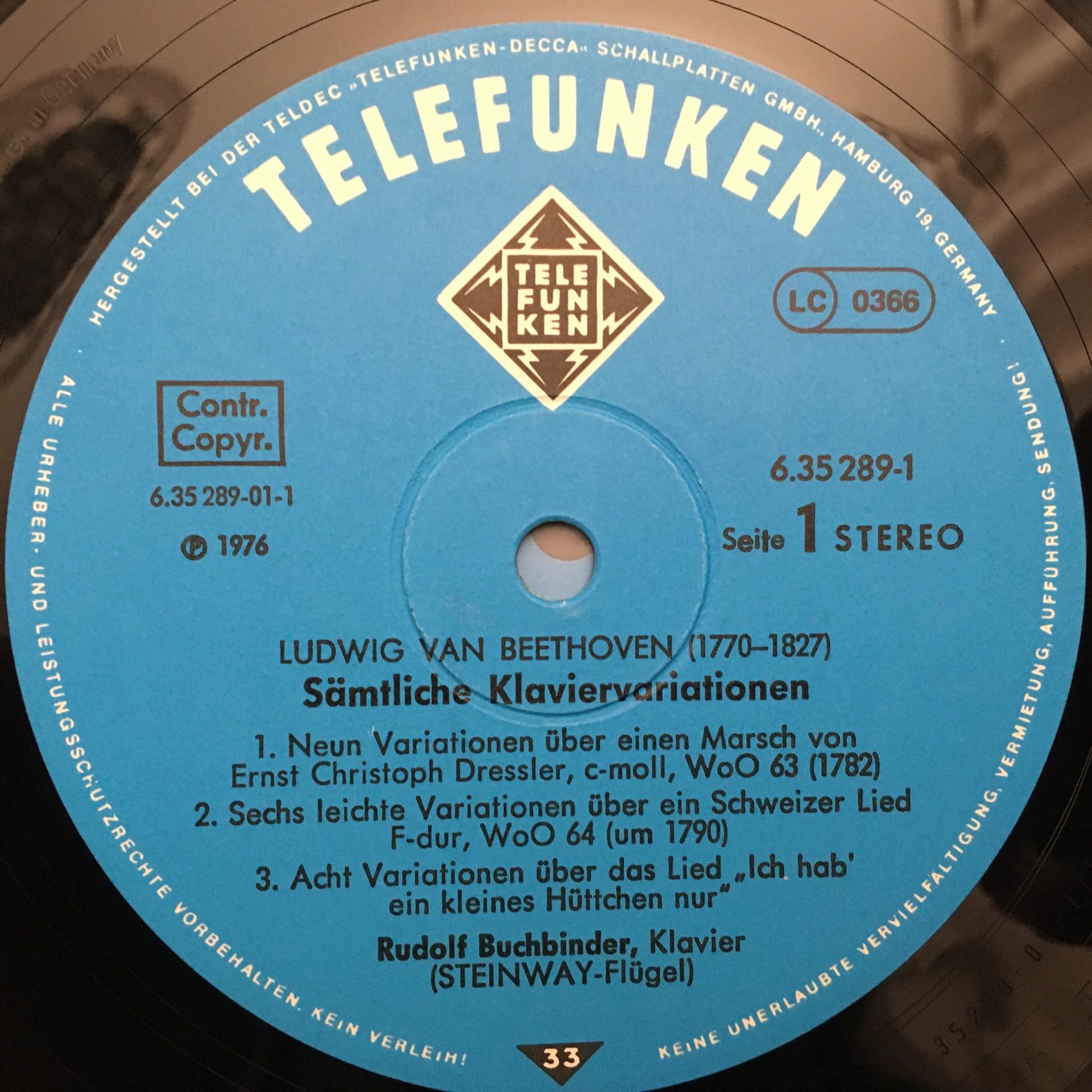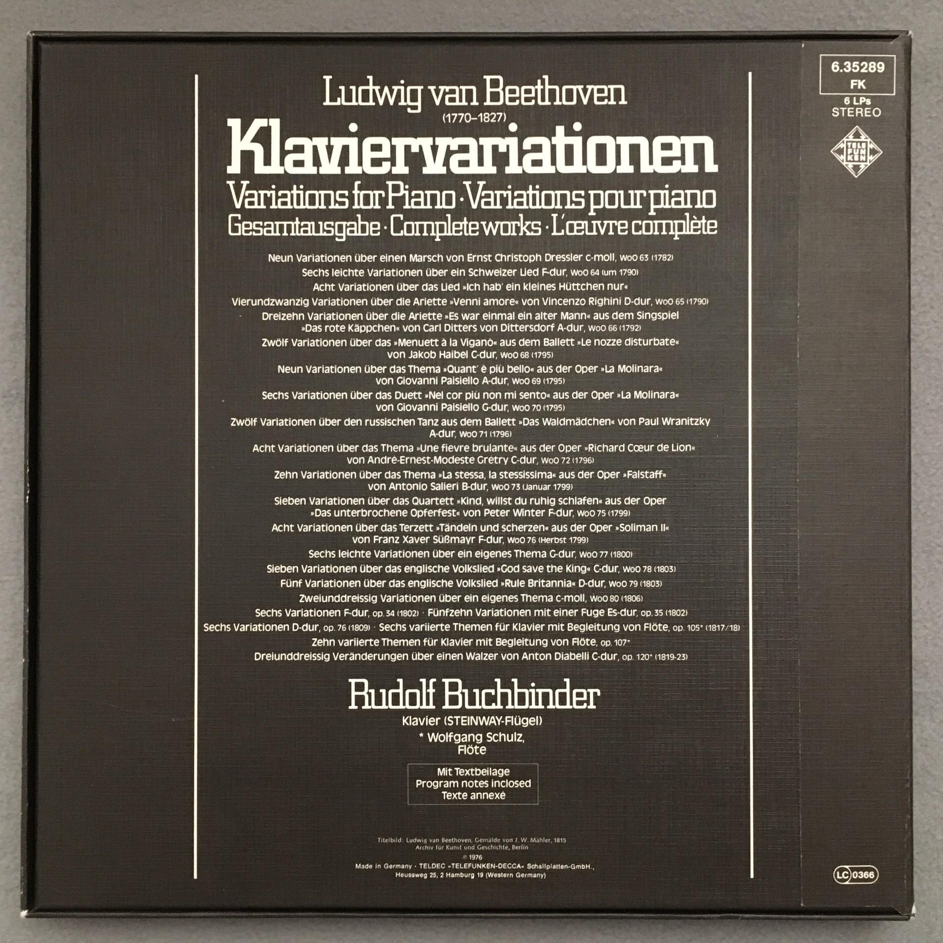 C891 Beethoven Piano Variations Buchbinder 6LP Telefunken 6.35289 FK Stereo