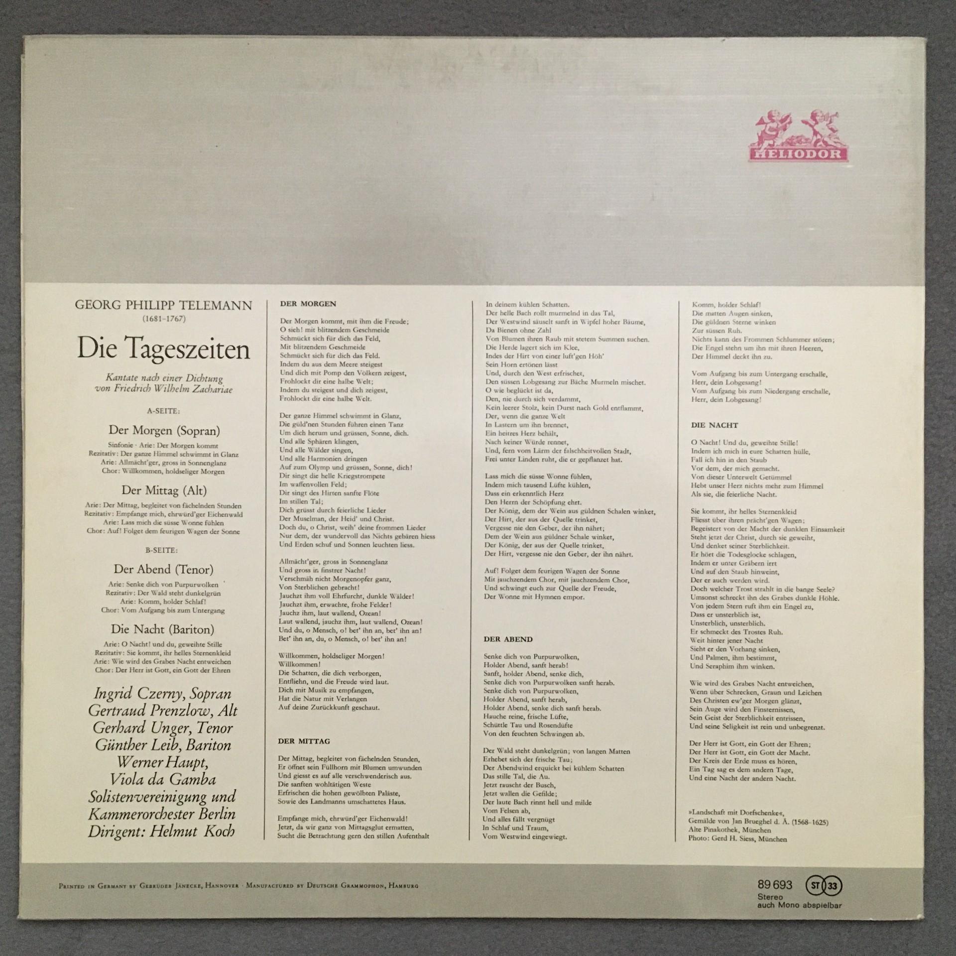 K695 TelemannThe Daytimes Cantatas Czerny Unger Koch Heliodor 89 693 Stereo