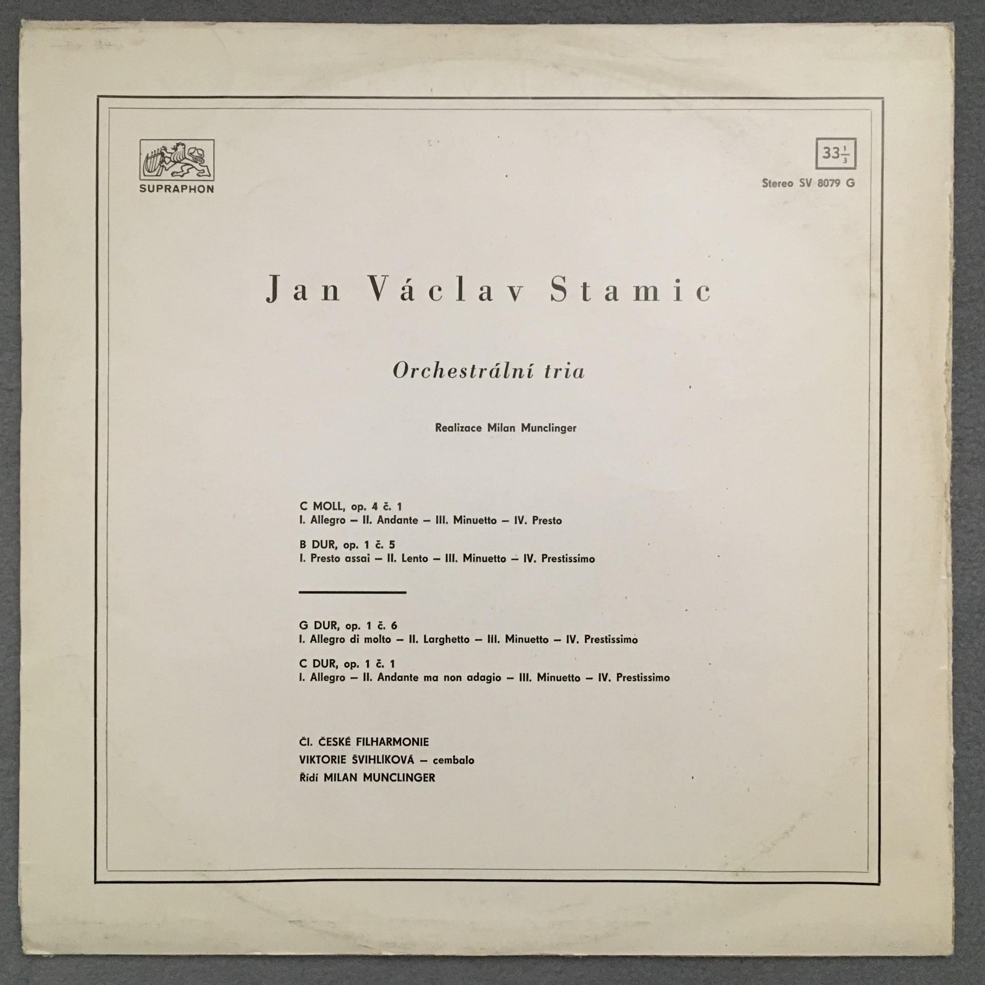 K696 Stamic Orchestralni Tria Svihlikova Munclinger Supraphon SV 8079 G Ster ED1
