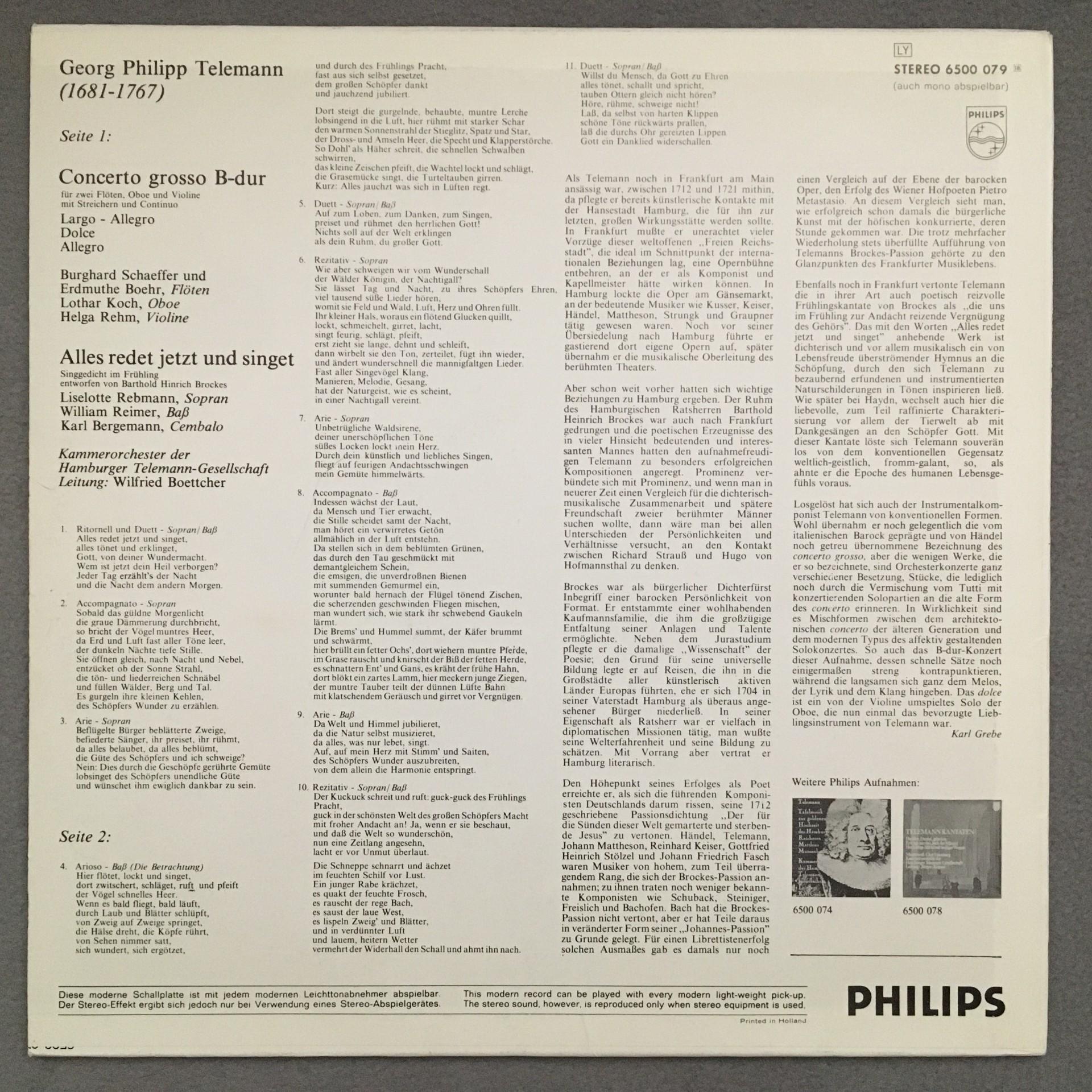 K697 Telemann Cantata Concerto Grosso Boettcher Philips 6500 079 Stereo