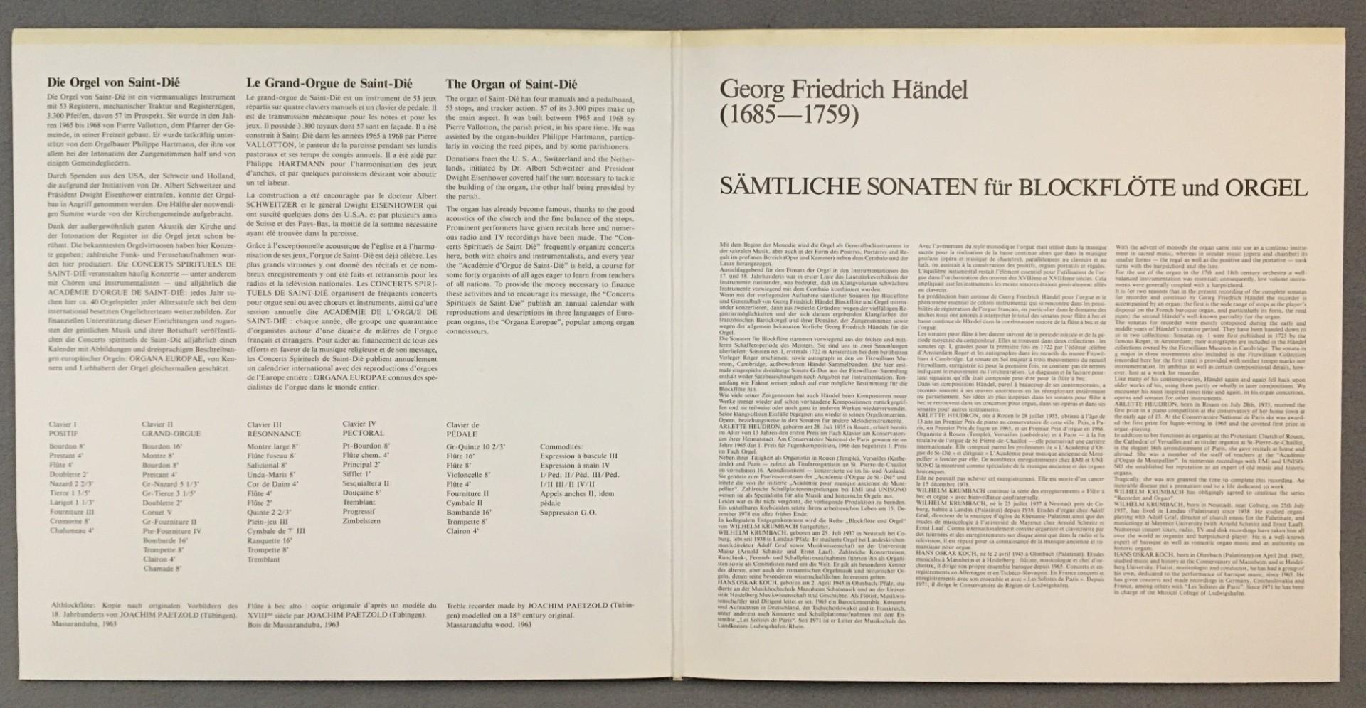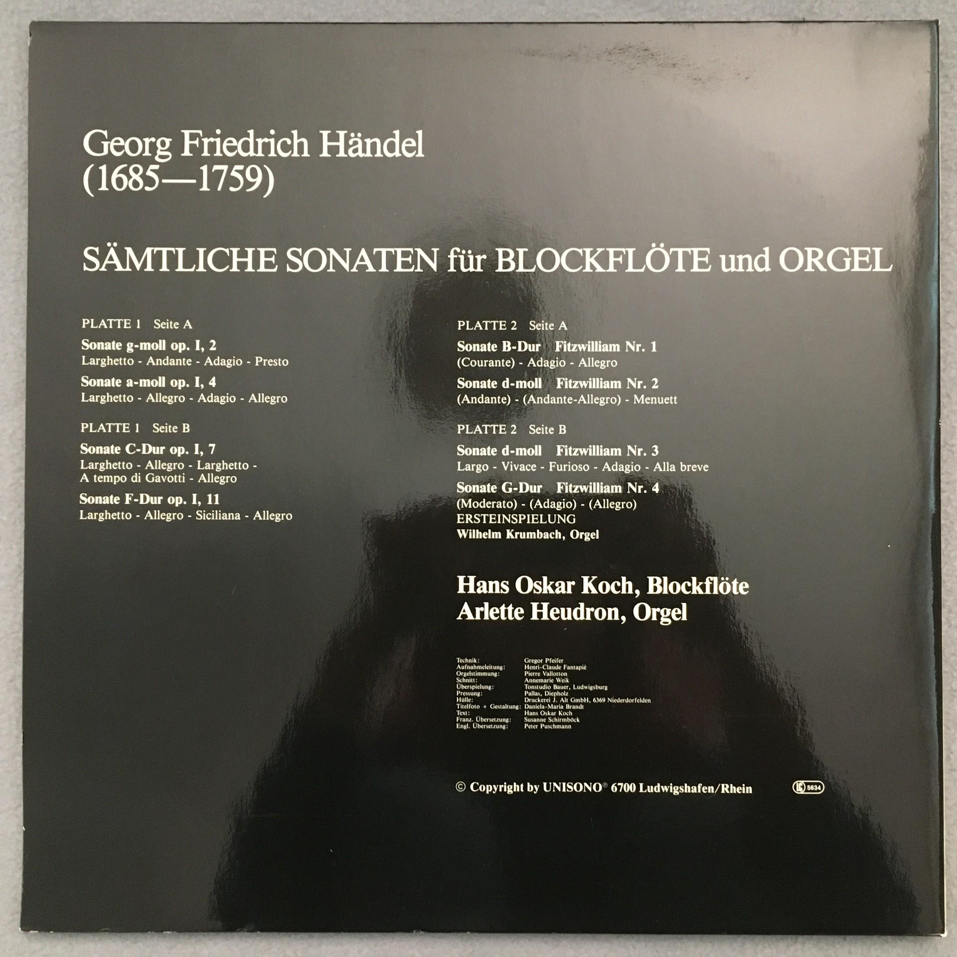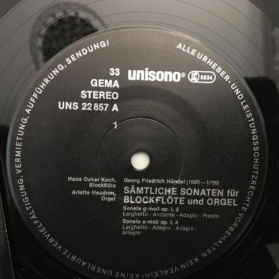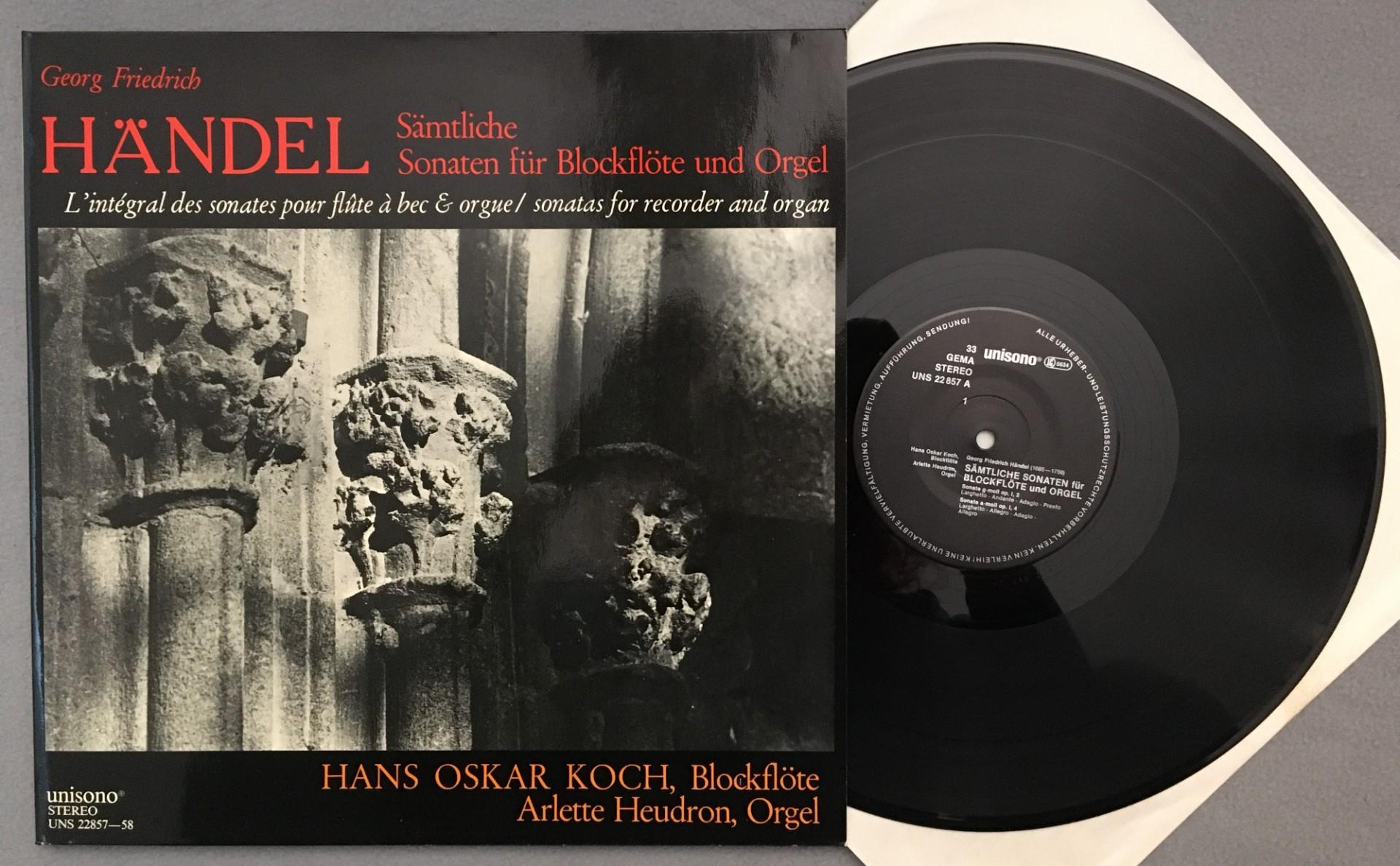 K701 Handel Recorder & Organ Sonatas Koch Heudron2LP Unisono UNS 22857-58 St