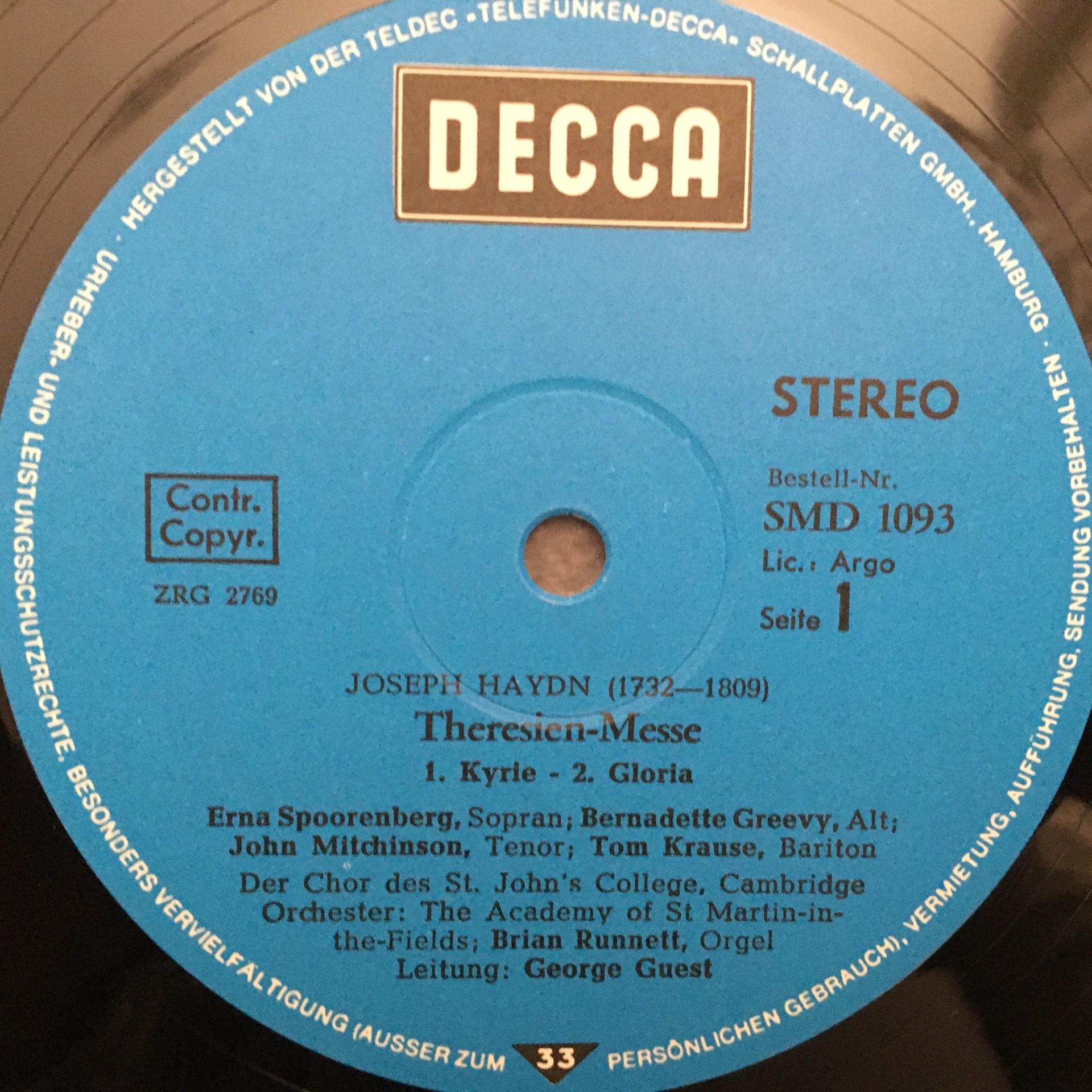 K705 Haydn Theresienmesse Spoorenberg Krause Guest DECCA SMD 1093 Stereo