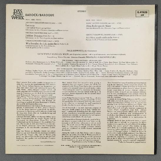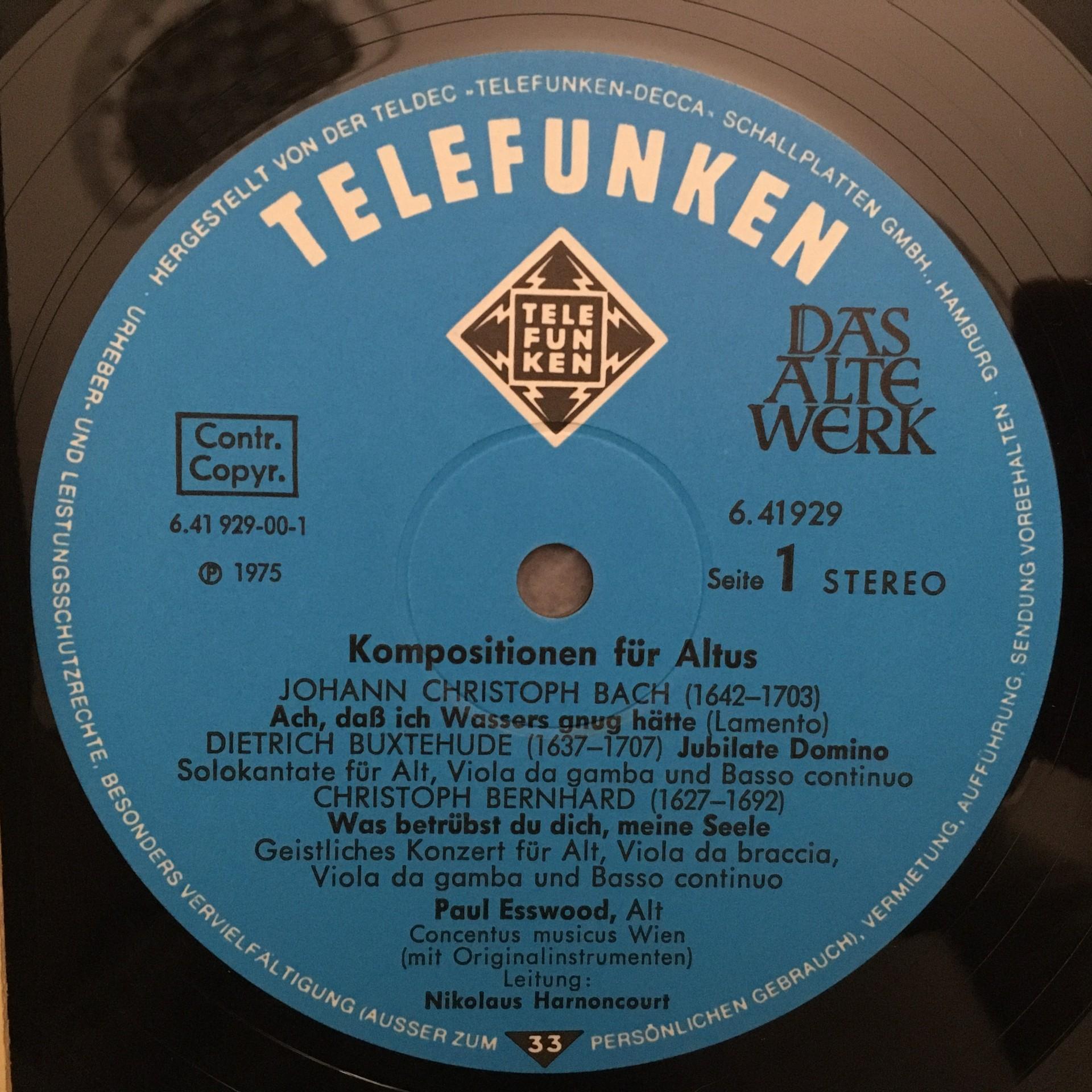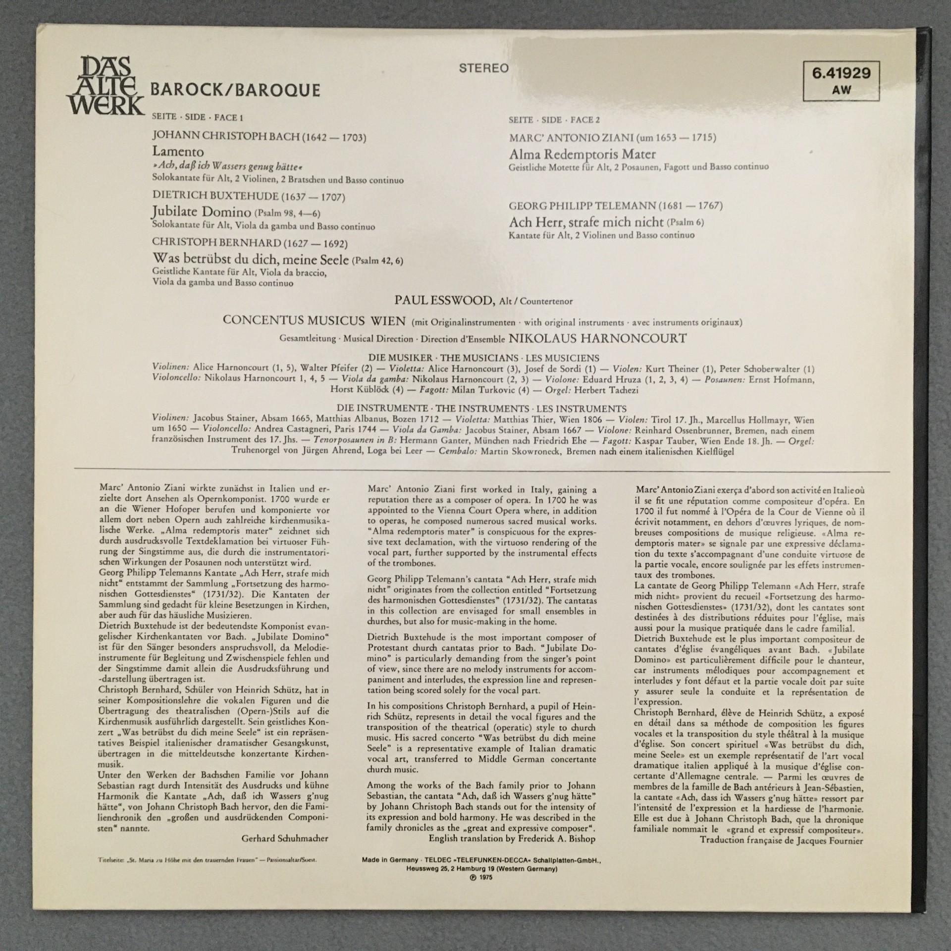 K707 Telemann Bach Compositions Esswood Harnoncourt Telefunken 6.41929 AW Stereo