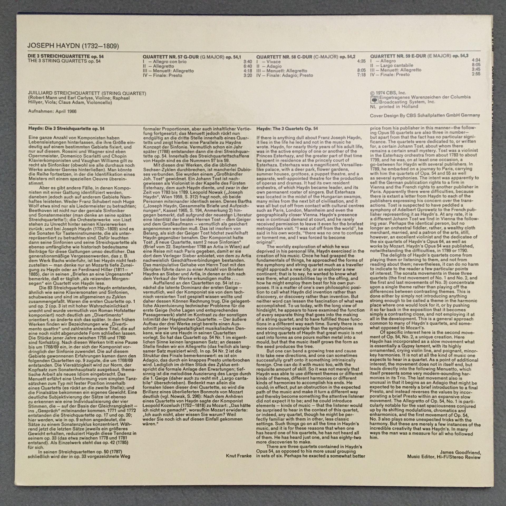 K708 Haydn The 3 String Quartets Juilliard String Quartet CBS 61 549 Stereo