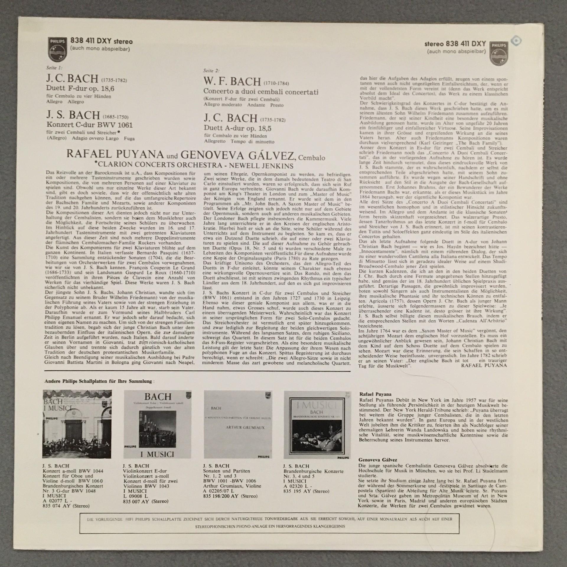 K709 Bach Family Concertos Duets Puyana Galvez Philips 838 411 DXY Stereo