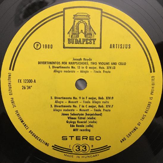 K714 Haydn Divertimentos Sebestyen Tatrai Banda Konrad Budapest FX 12300 Stereo