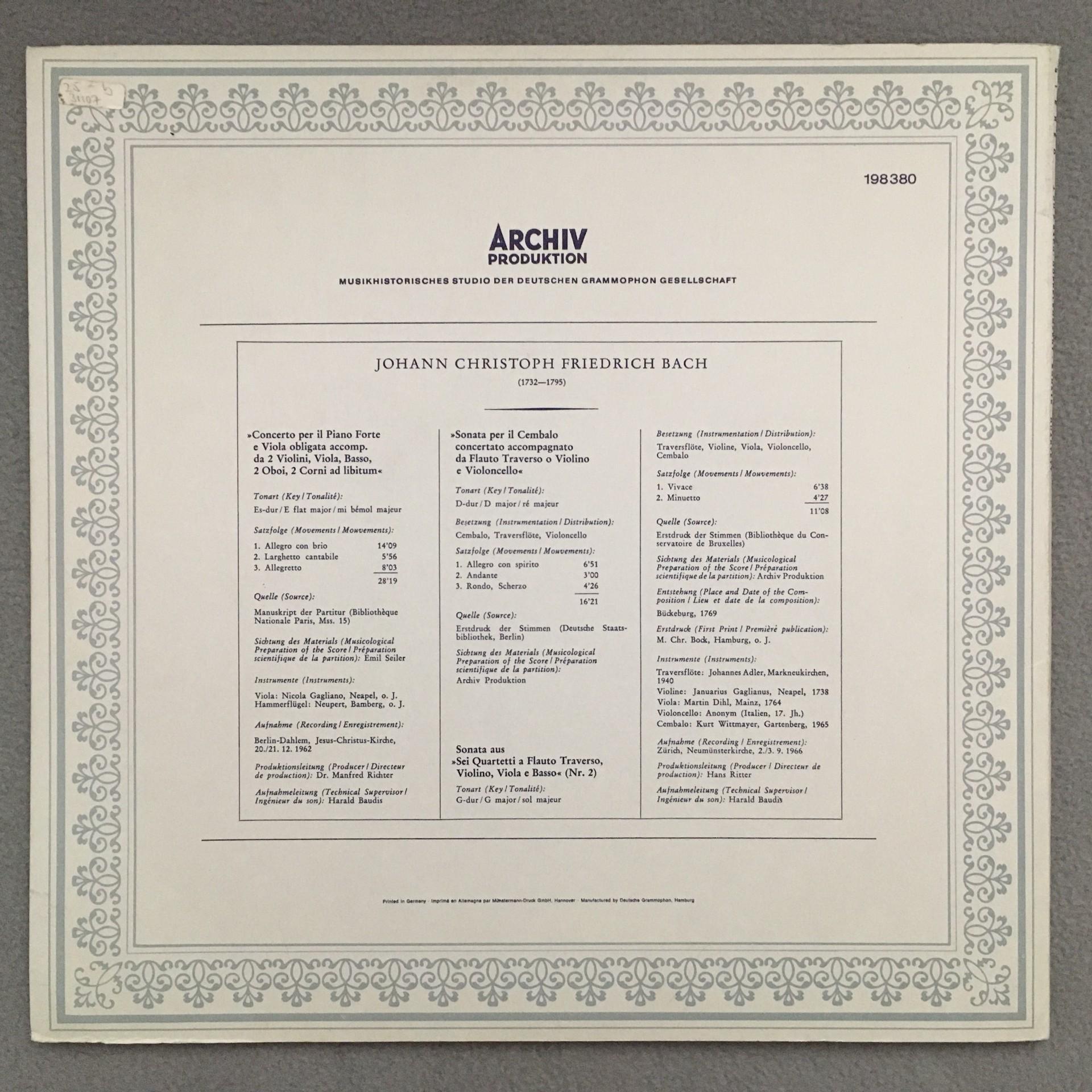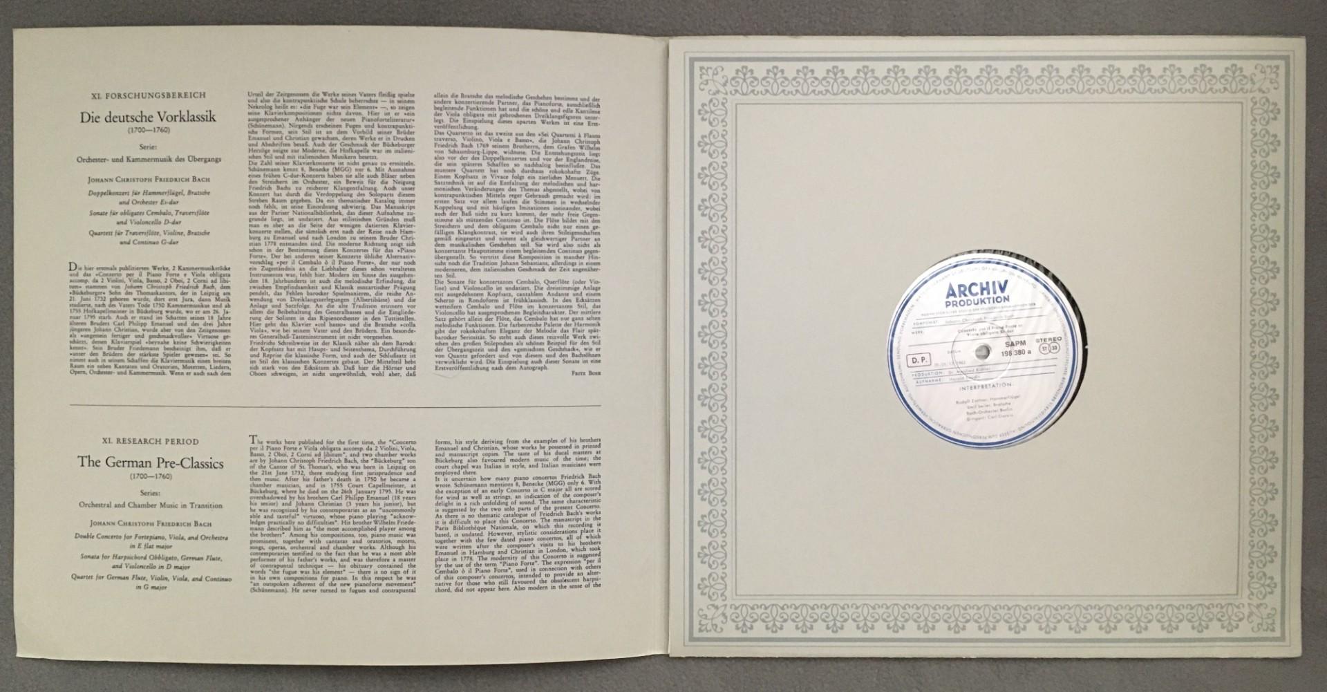 K718 C.P.E. Bach Double Concerto Sonata Linde Gorvin Archiv DGG 198 380 Stereo