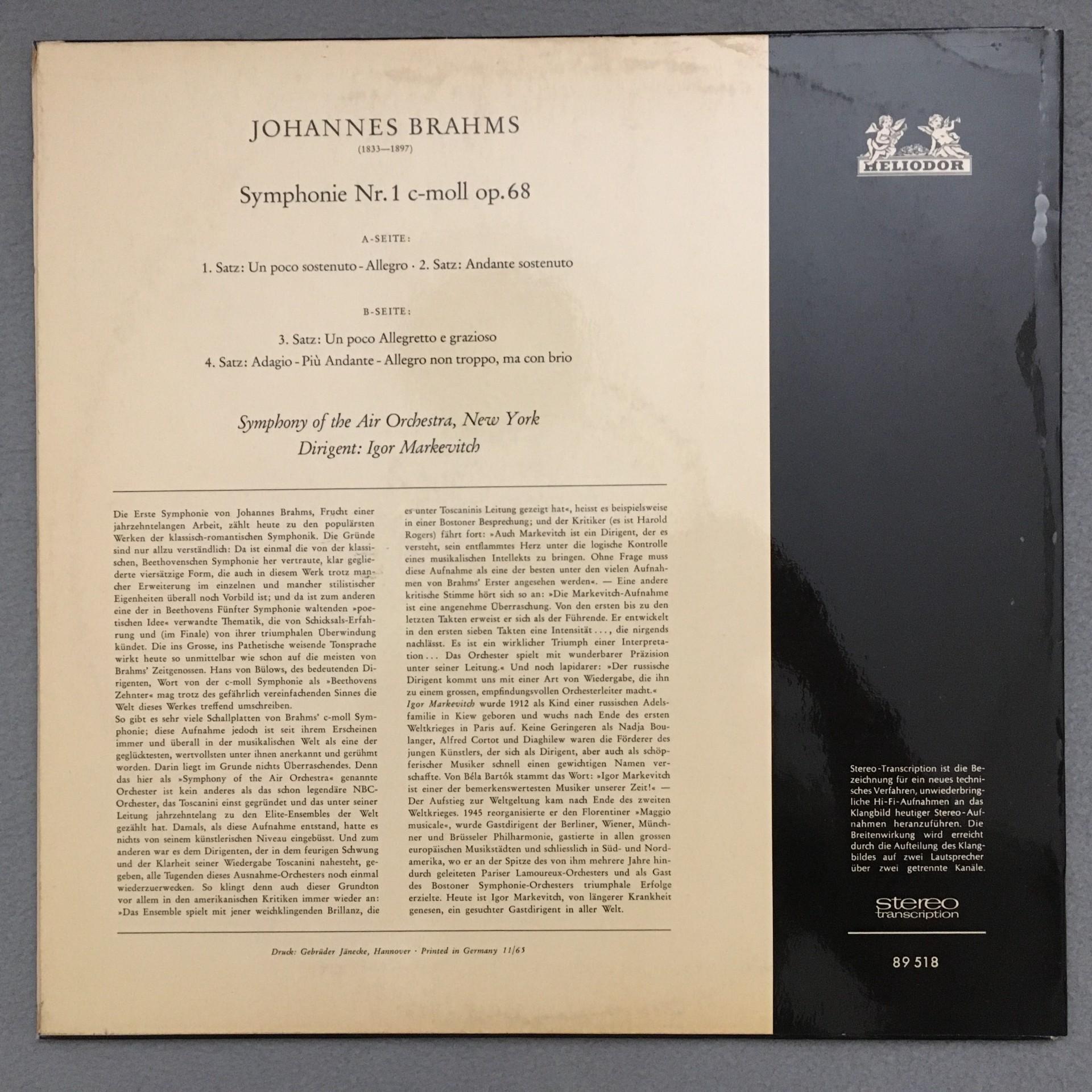 K721 Brahms Symphony No.1 Markevich Heliodor 89 518 Stereo