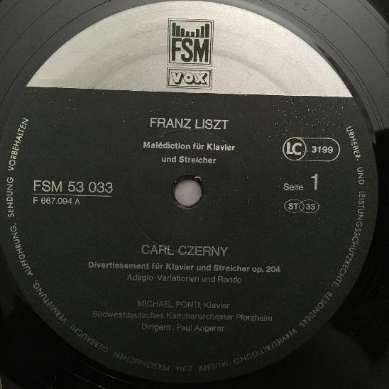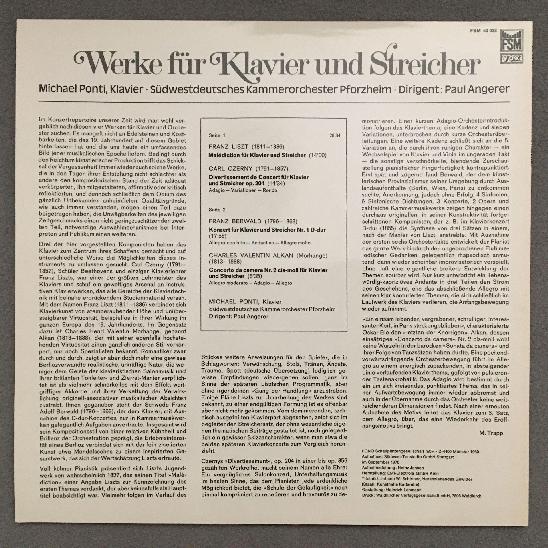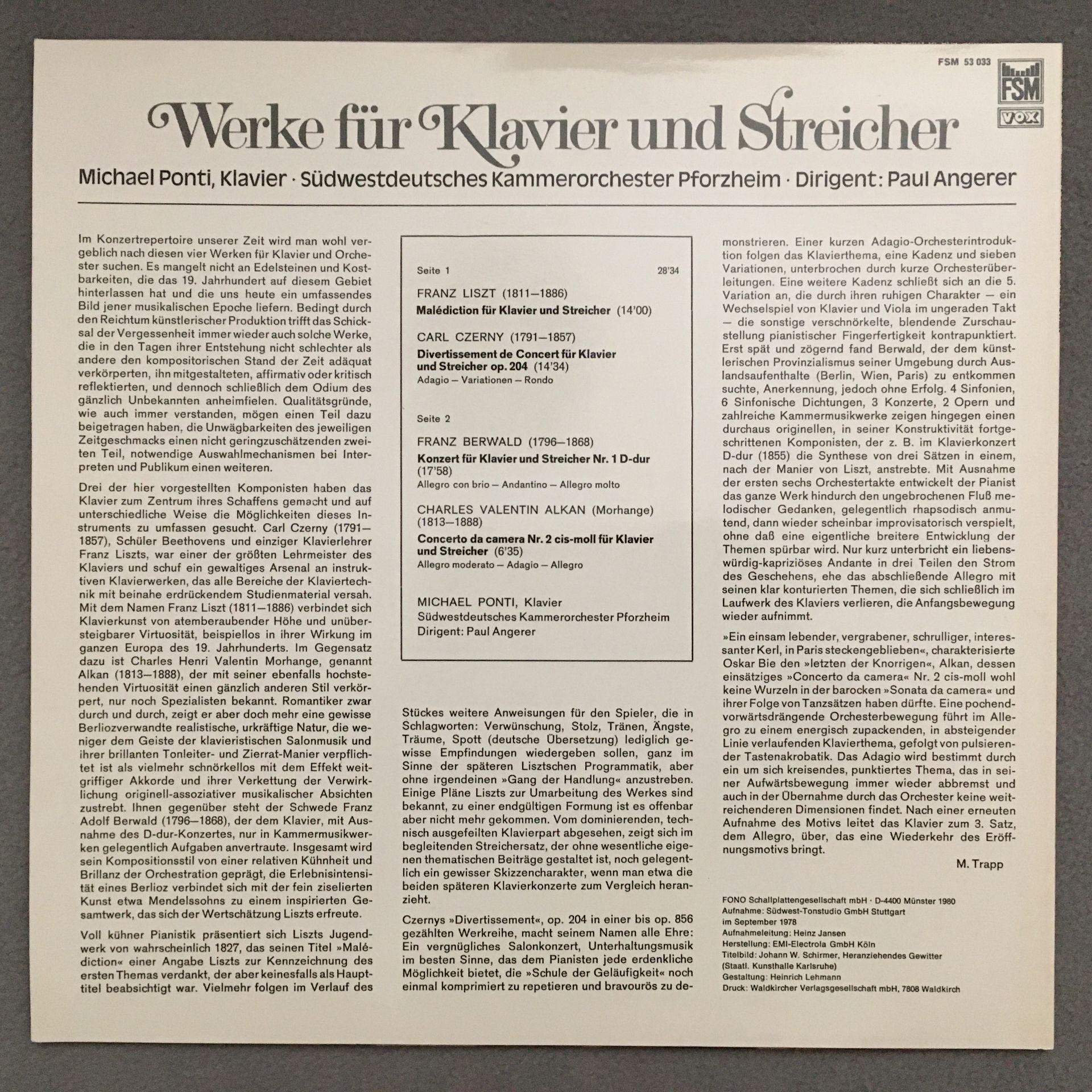 K733 Works for Piano & Strings Liszt Czerny Ponti Angerer FSM 53 033 Stereo