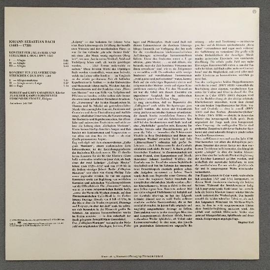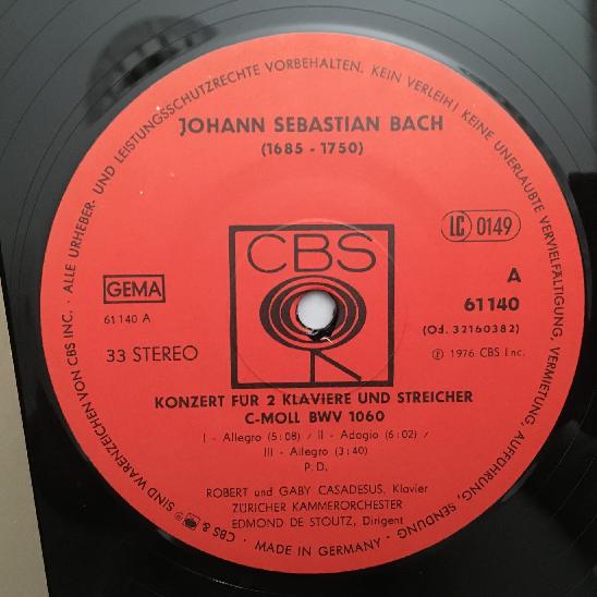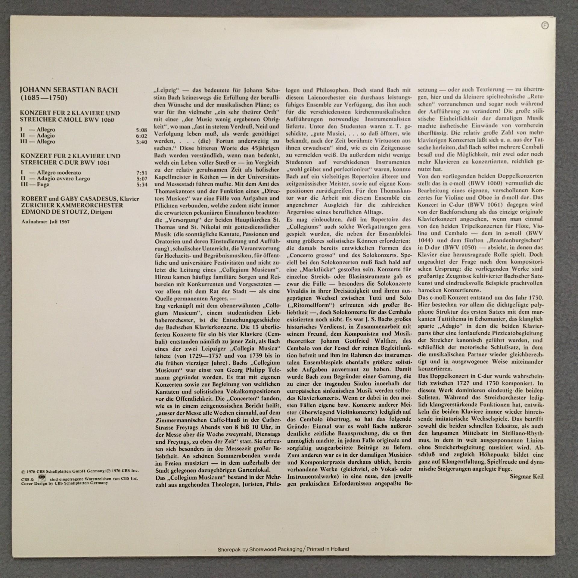 K742 Bach Concertos for 2 Pianos R. & G. Casadesus De Stoutz CBS 61 140 Stereo