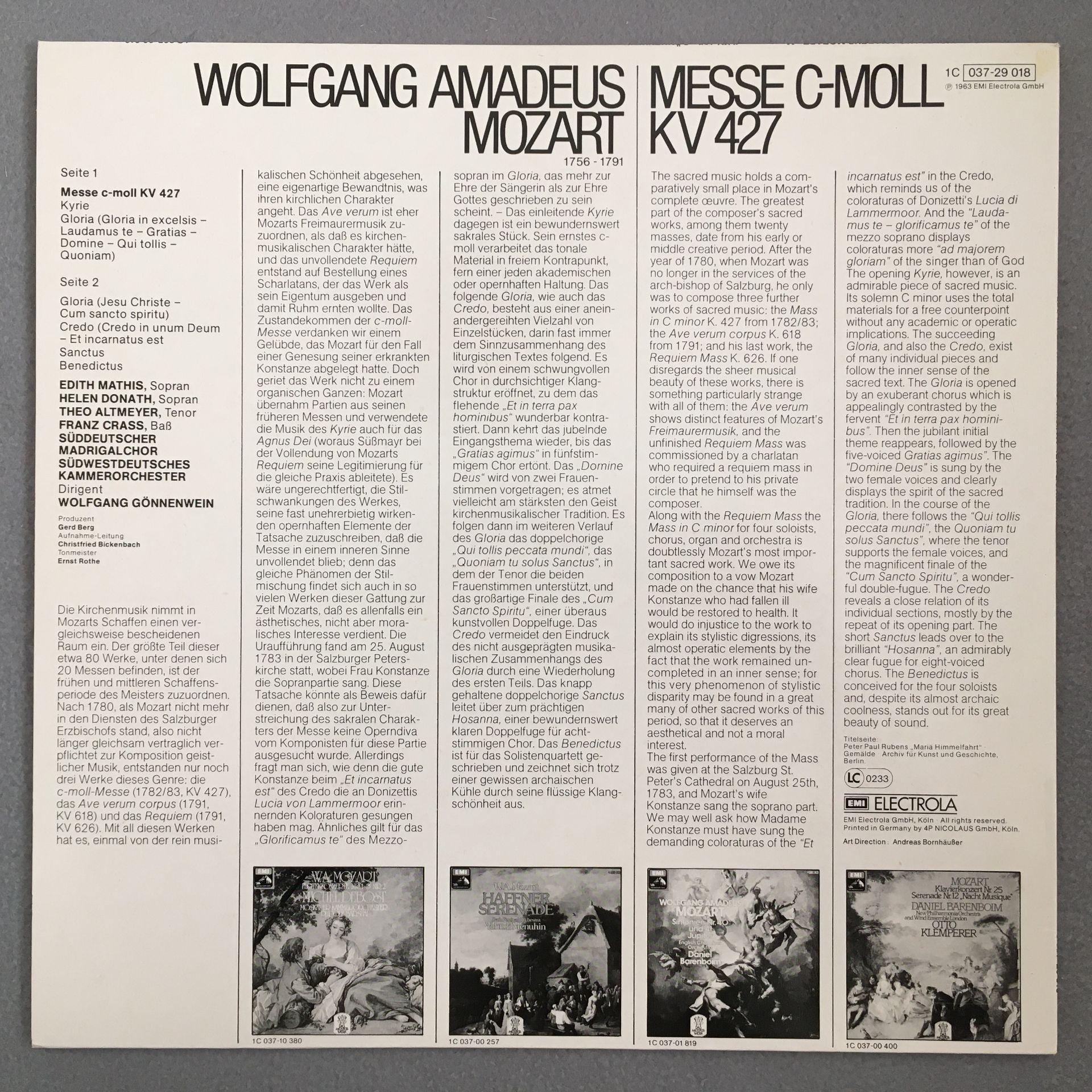 P268 Mozart Mass KV 427 Mathis Donath Gönnenwein EMI 1C 037-29 018 Stereo