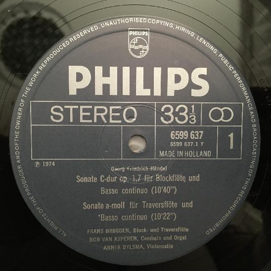 C892 Handel Sonatas for Wind Instrument & Bass Brüggen 3LP Philips 6747 096 Ster