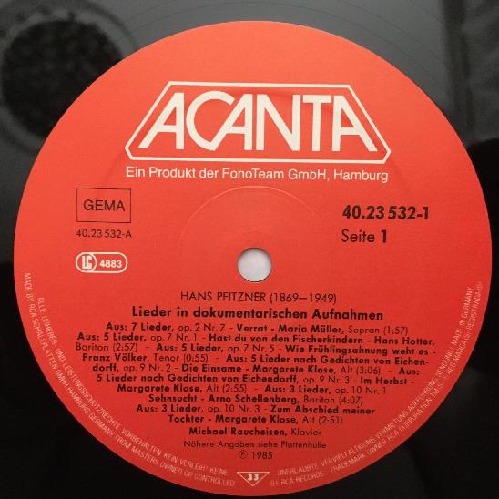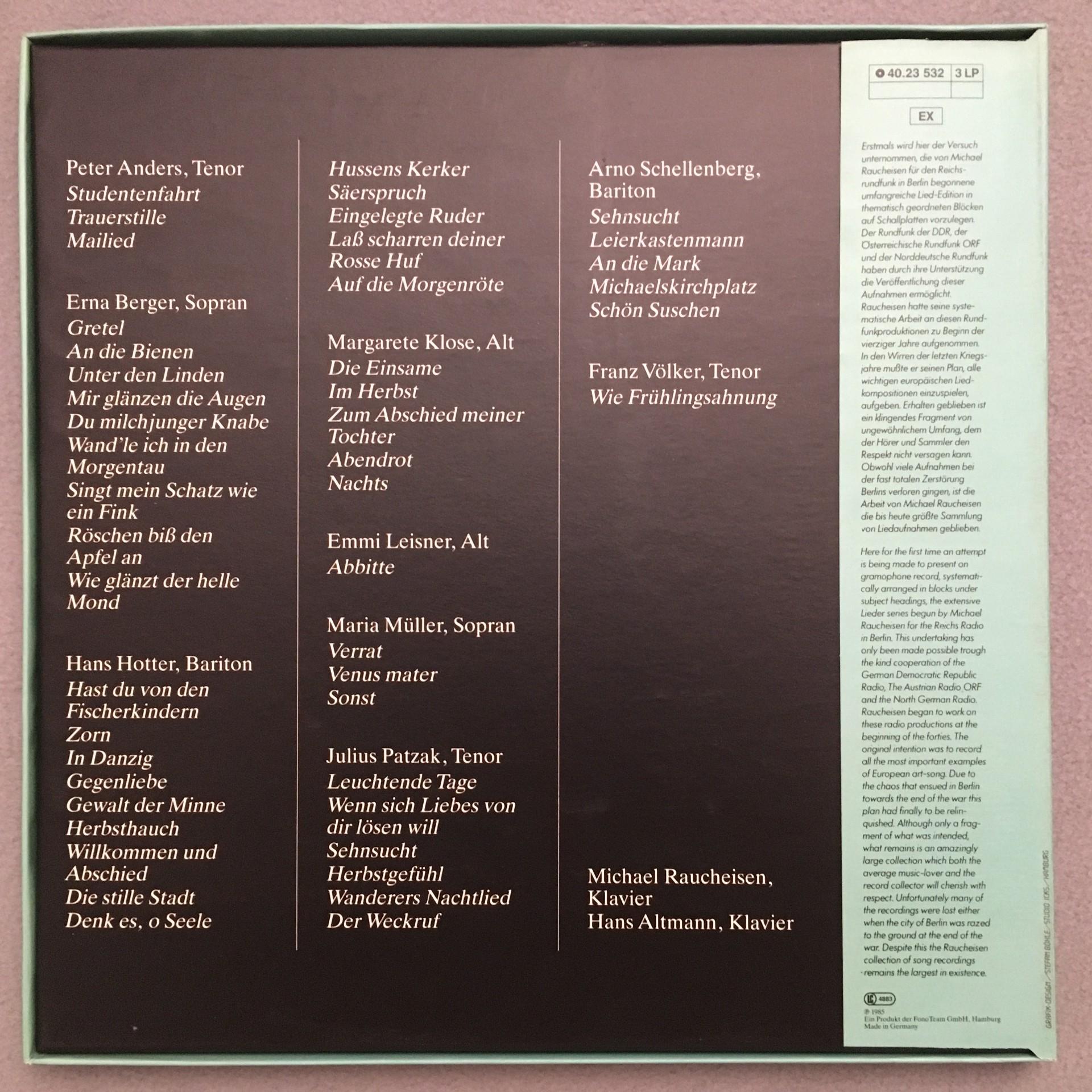 C893 Pfitzner Songs Berger Klose Raucheisen Piano 3LP Acanta 40.23 532 EX Stereo