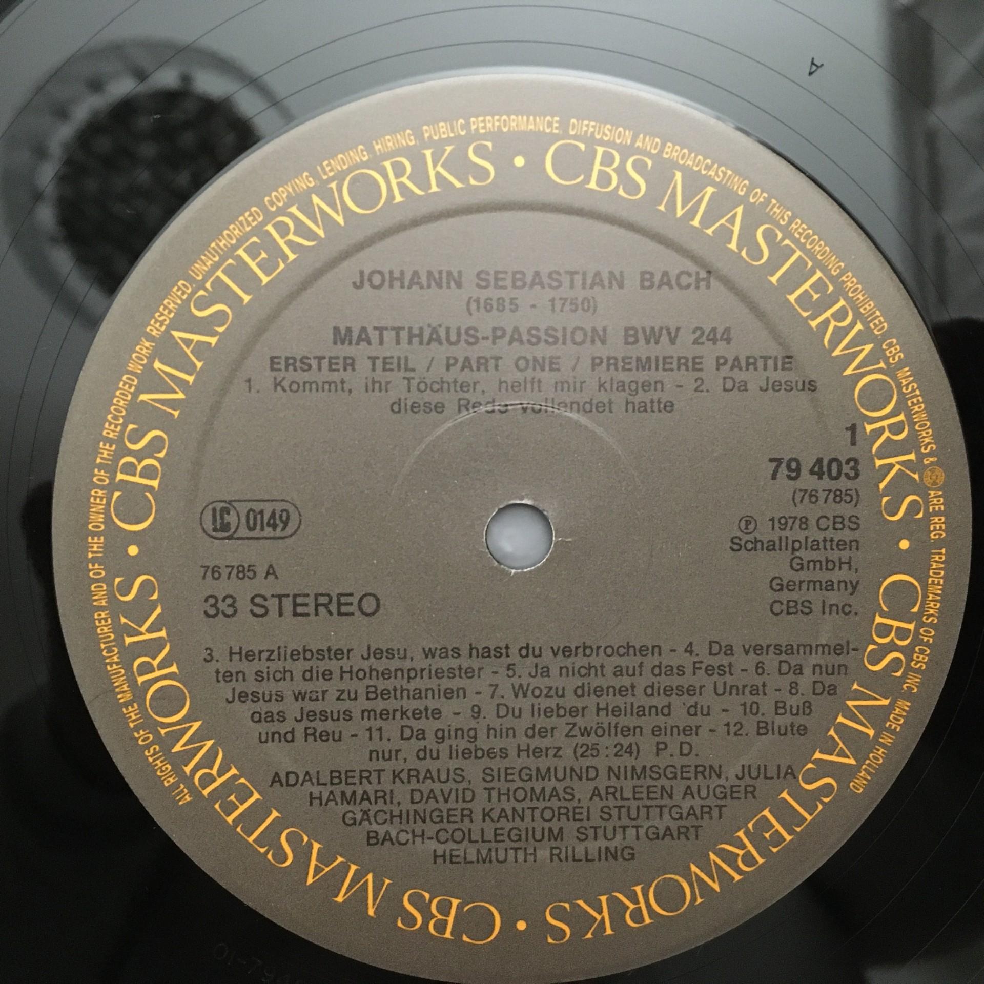 C901 Bach St. Matthew Passion Auger Hamari Rilling 4LP CBS 79403 Stereo