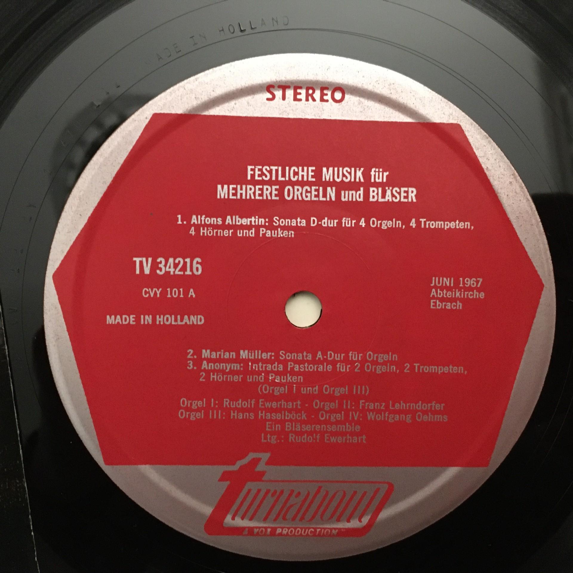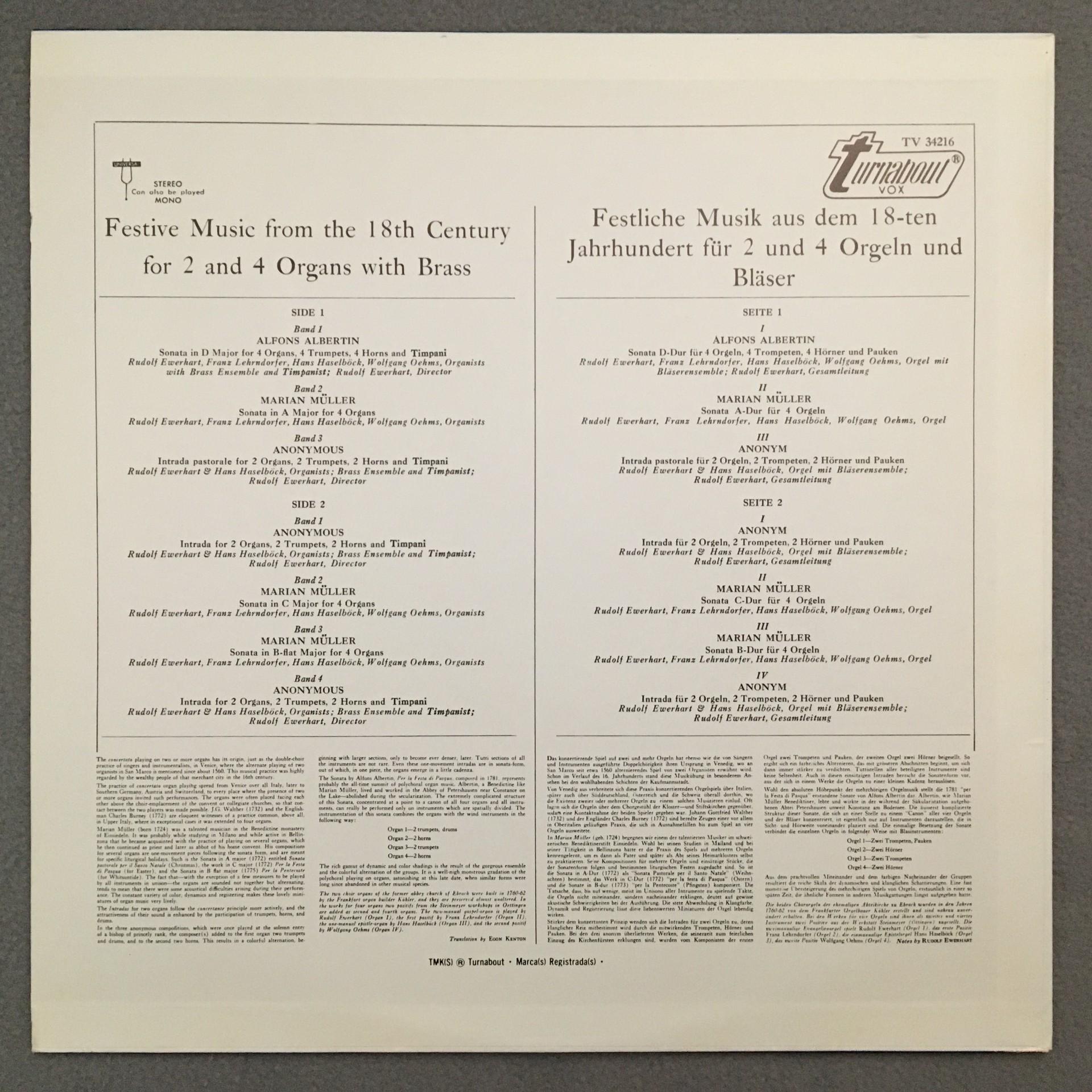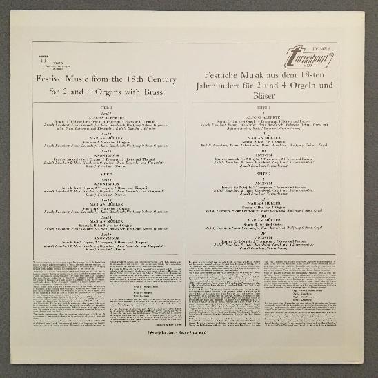 K761 Festive Music 18th Century Organ & Winds Ewerhart Turnabout TV 34216 Stereo