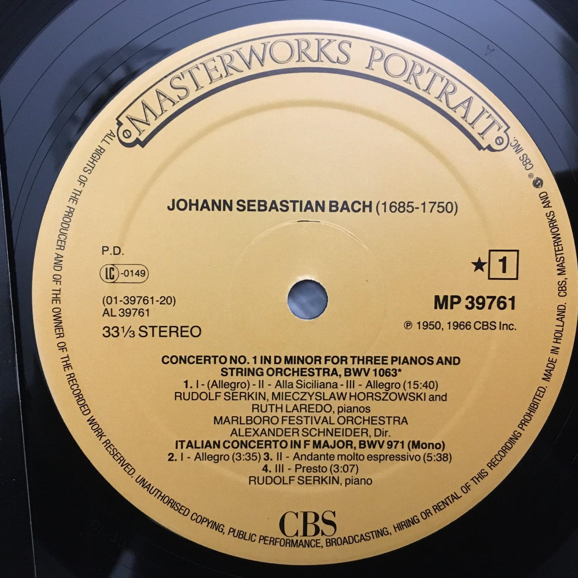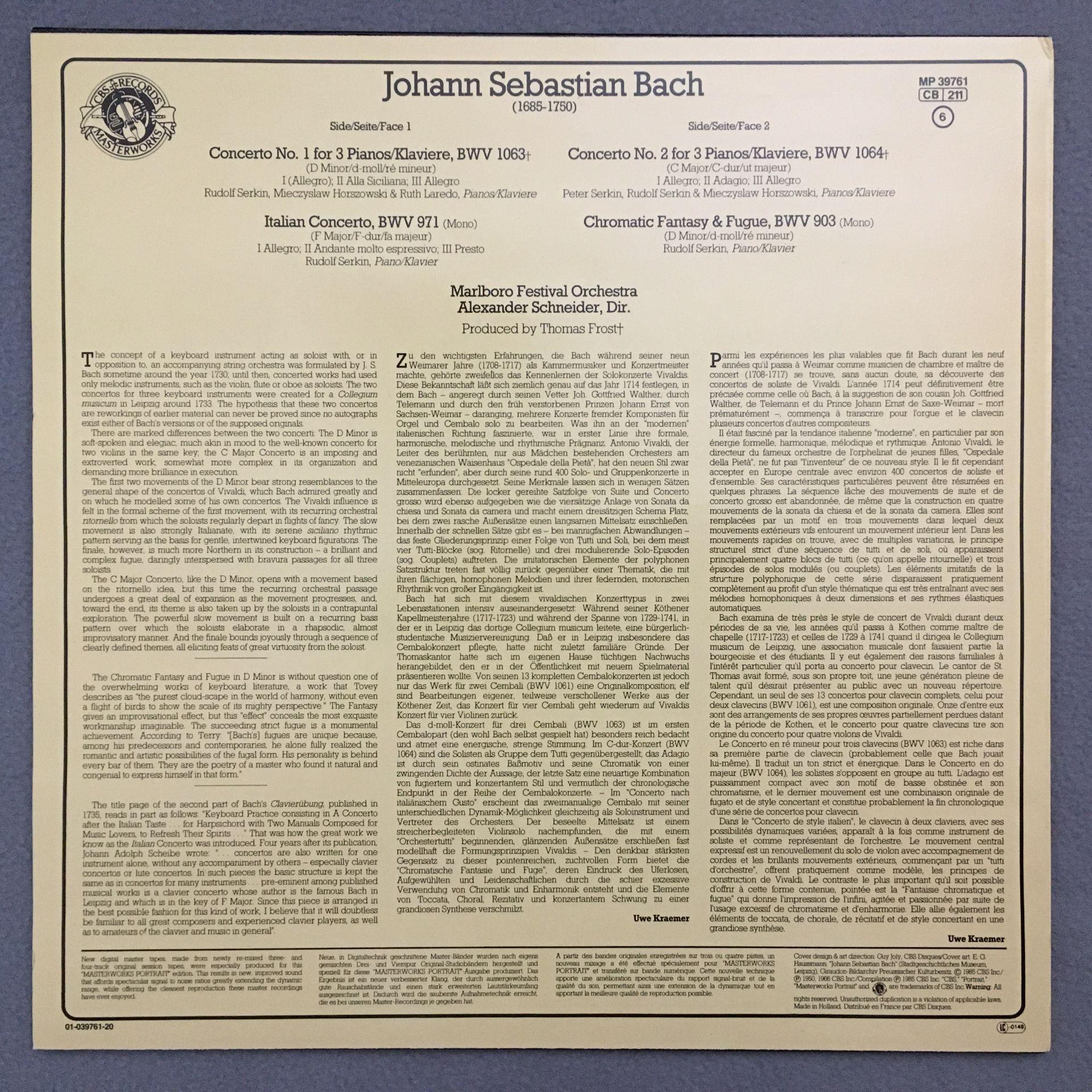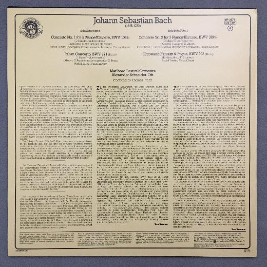 K764 Bach Piano Concertos Fantasy & Fugue Serkin Schneider CBS MP 39761 Stereo