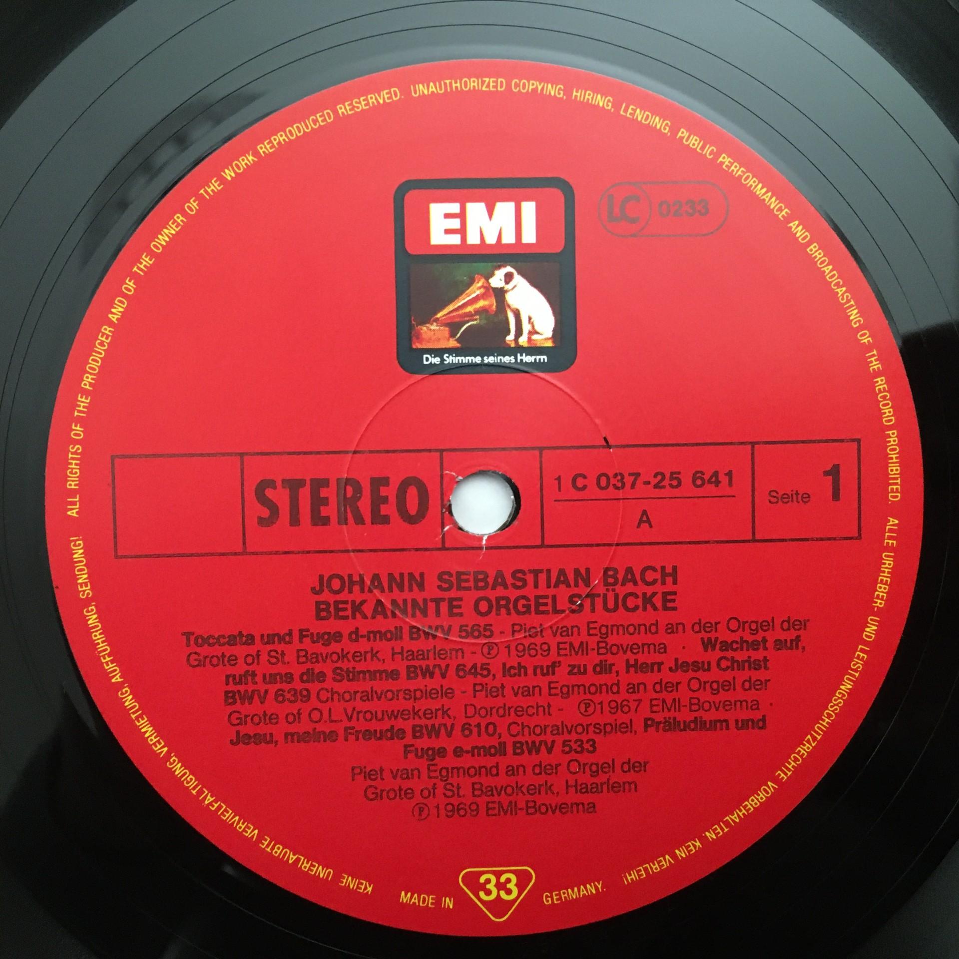K768 Bach Organ Pieces Toccata Van Egmond EMI 1C 037-25 641 Stereo