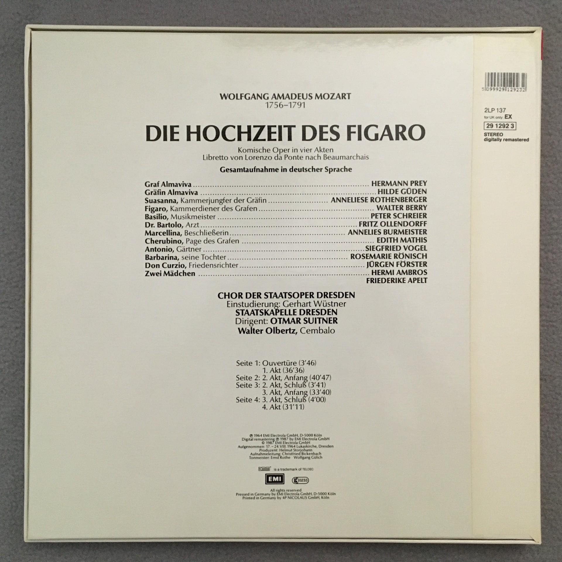G139 Mozart Hochzeit des Figaro Prey Suitner 2LP EMI 137 29 1292 3 Digital Ster