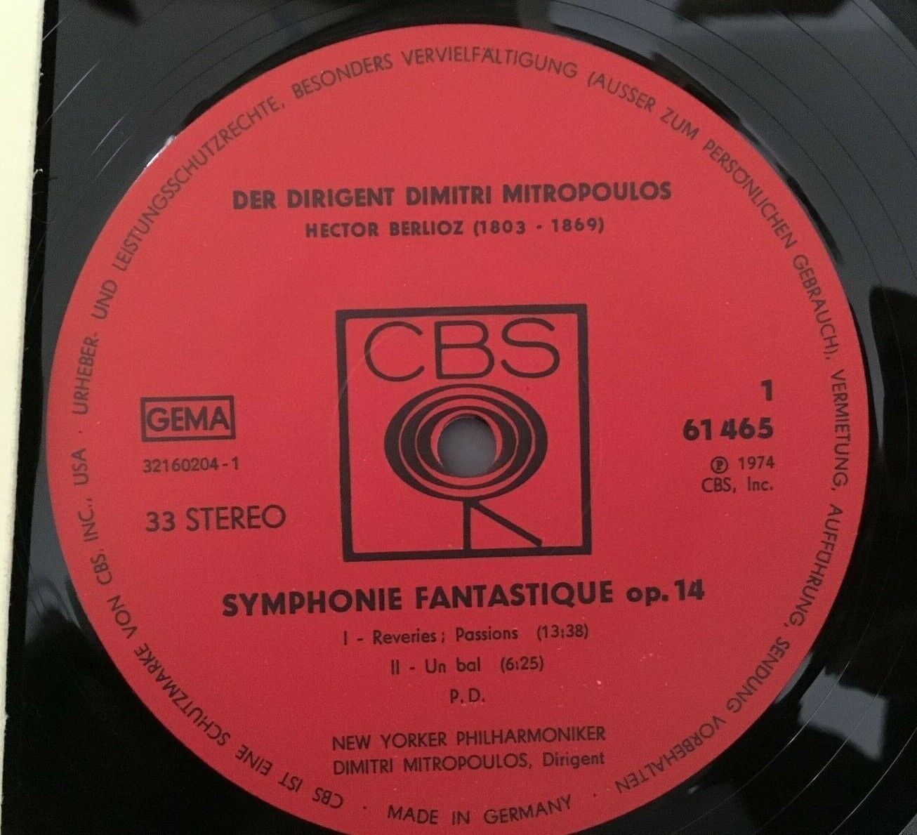P274 Berlioz Symphony Fantastique Op.14 Mitropoulos CBS 61 465 Stereo