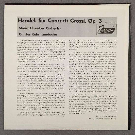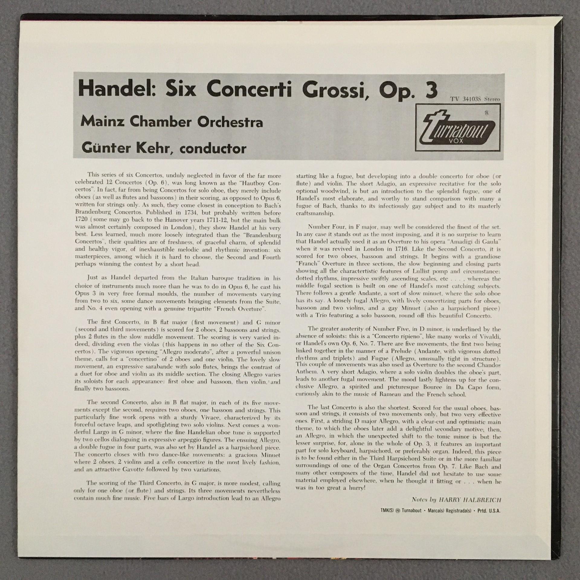 K773 Handel Concerti Grossi Op.3 Kehr Turnabout TV 34103S Stereo