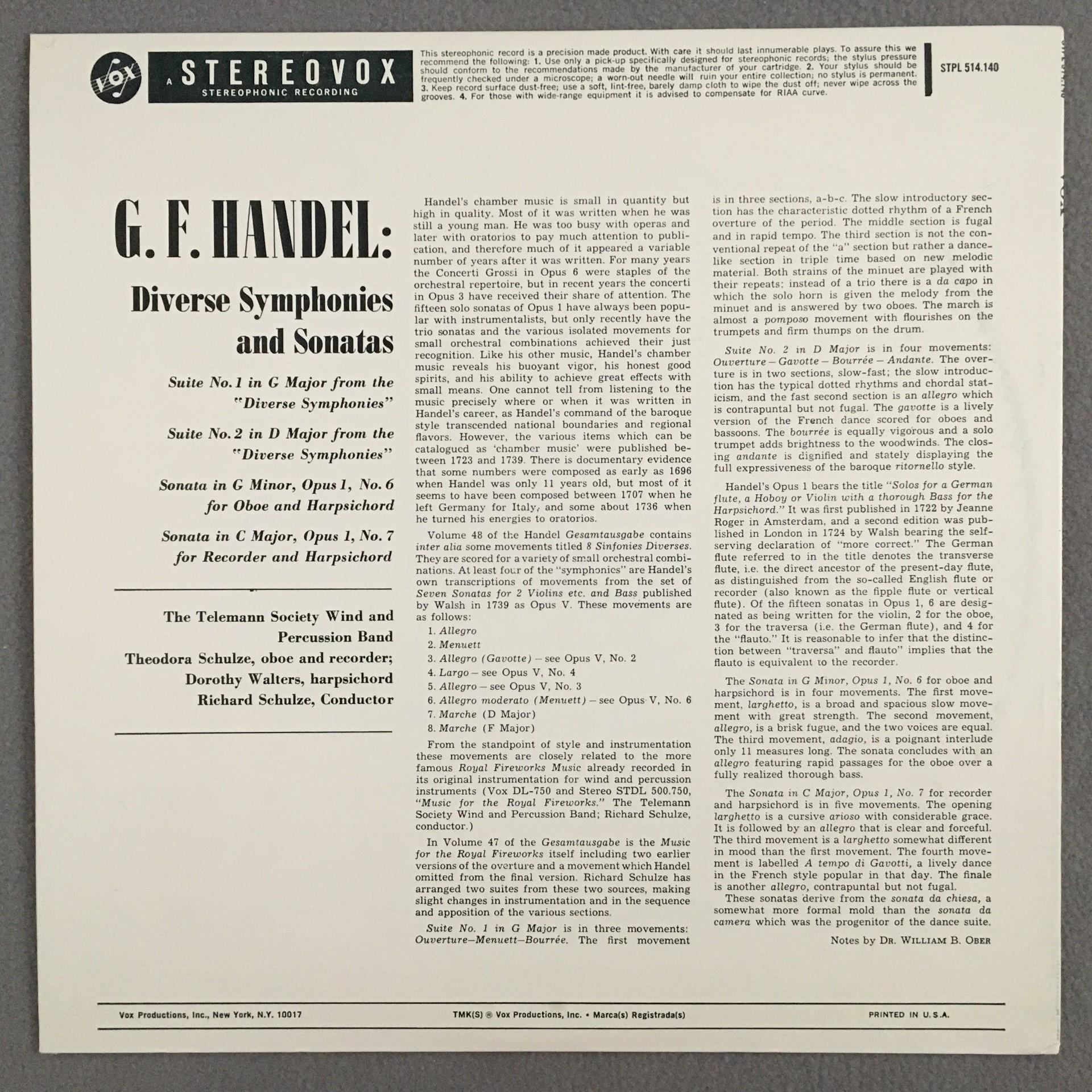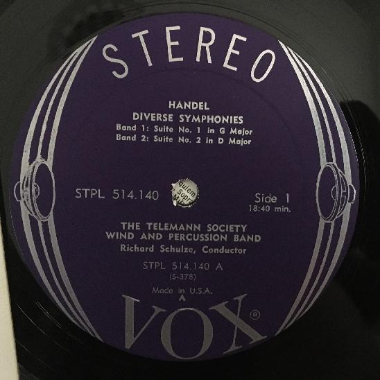 K774 Handel Symphonies Sonatas Schulze VOX STPL 514.140 Stereo
