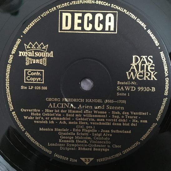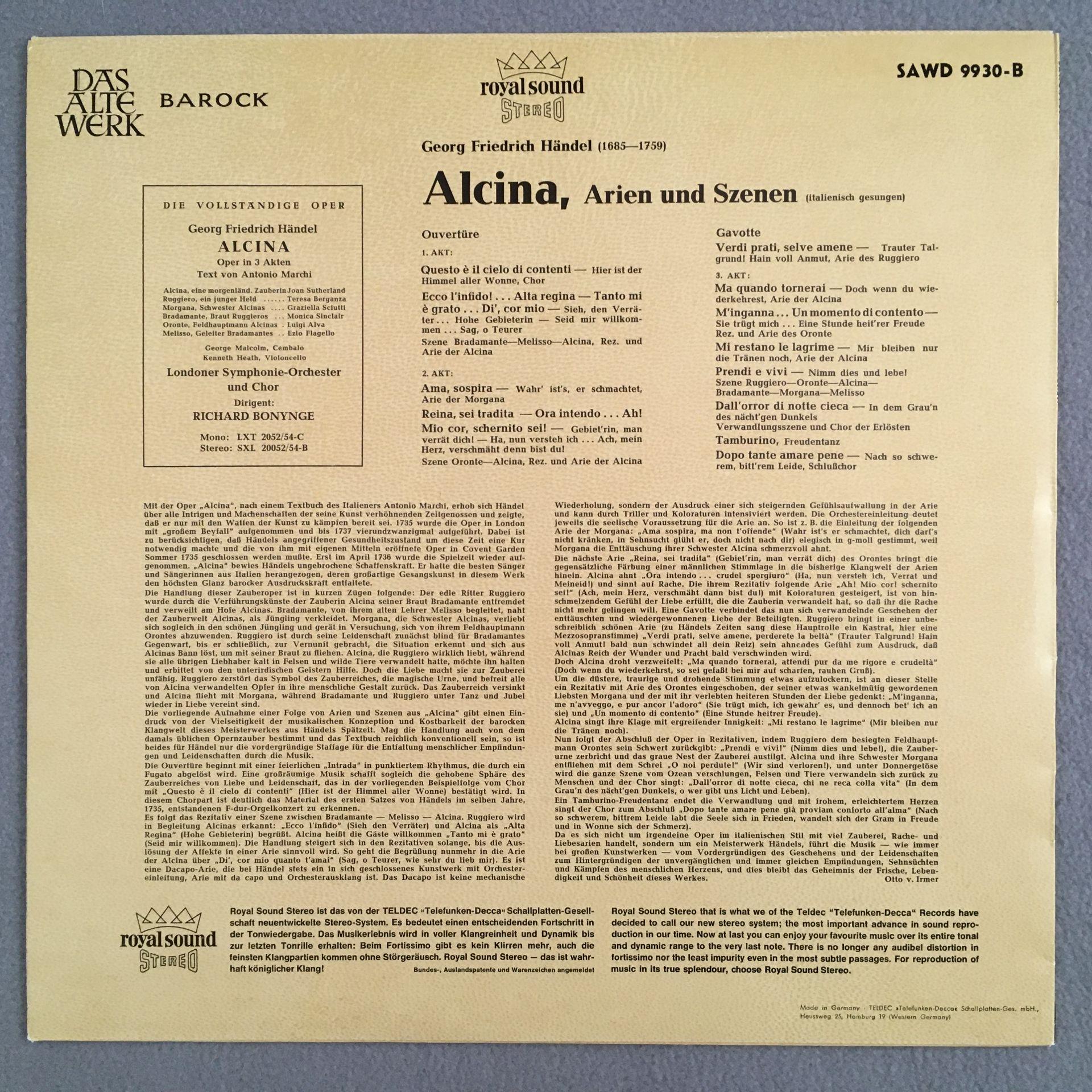 K779 Handel Alcina Arias & Scenes Bonynge DECCA SAWD 9930-B Stereo