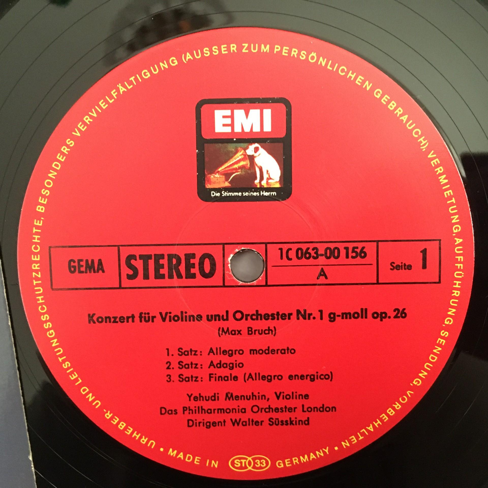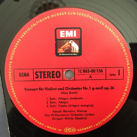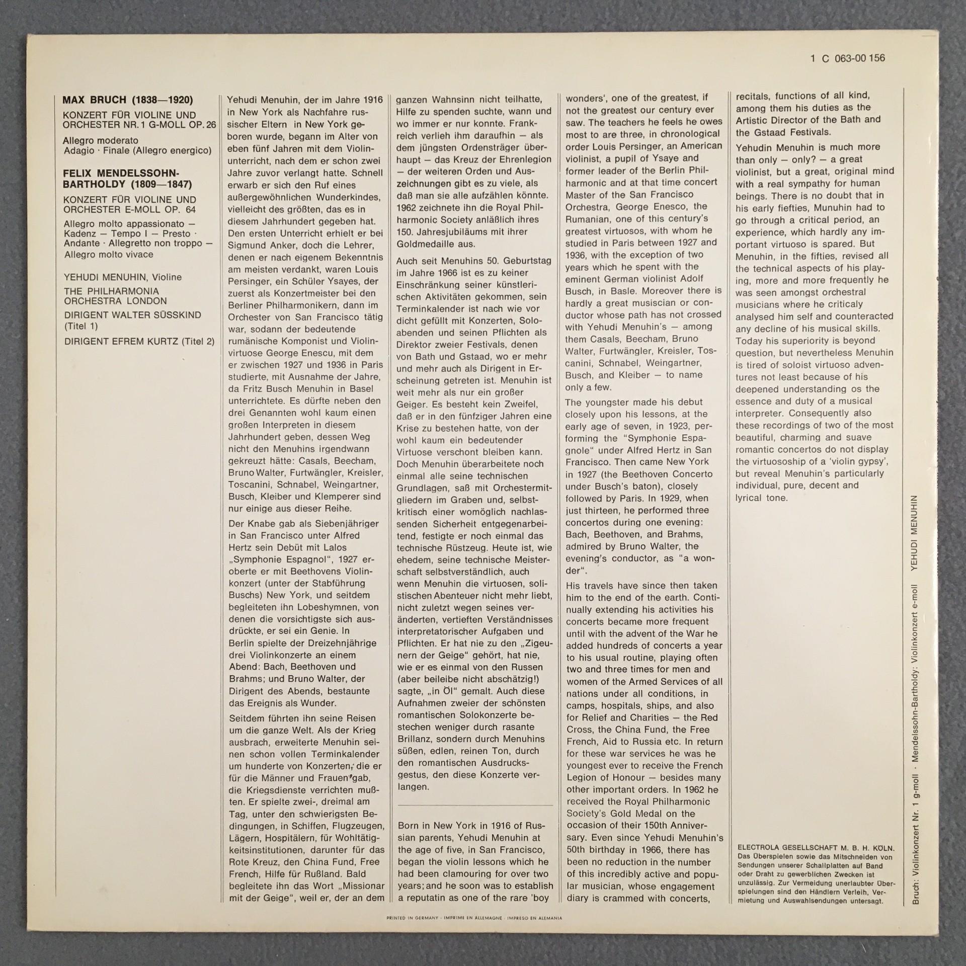 K785 Bruch Mendelssohn Violin Concertos Menuhin Kurtz EMI 1 C 063-00 156 Stereo